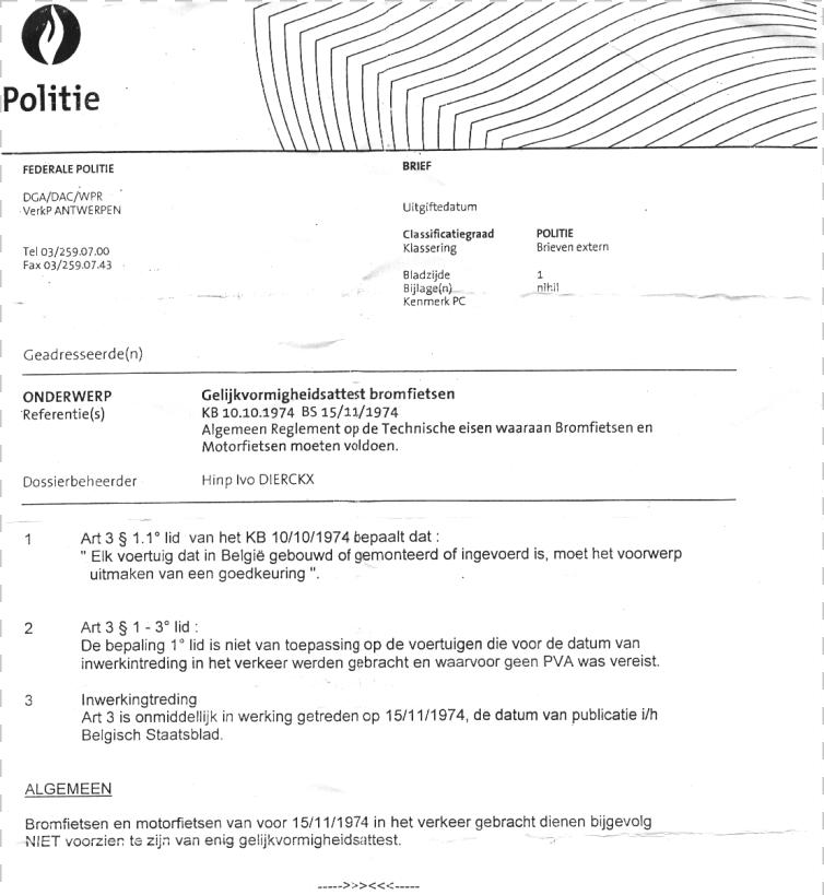 Geen papieren? Wees zeer voorzichtig met een brommer zonder documenten, want het verkrijgen van nieuwe papieren is een complex proces via de Federale Politie.
