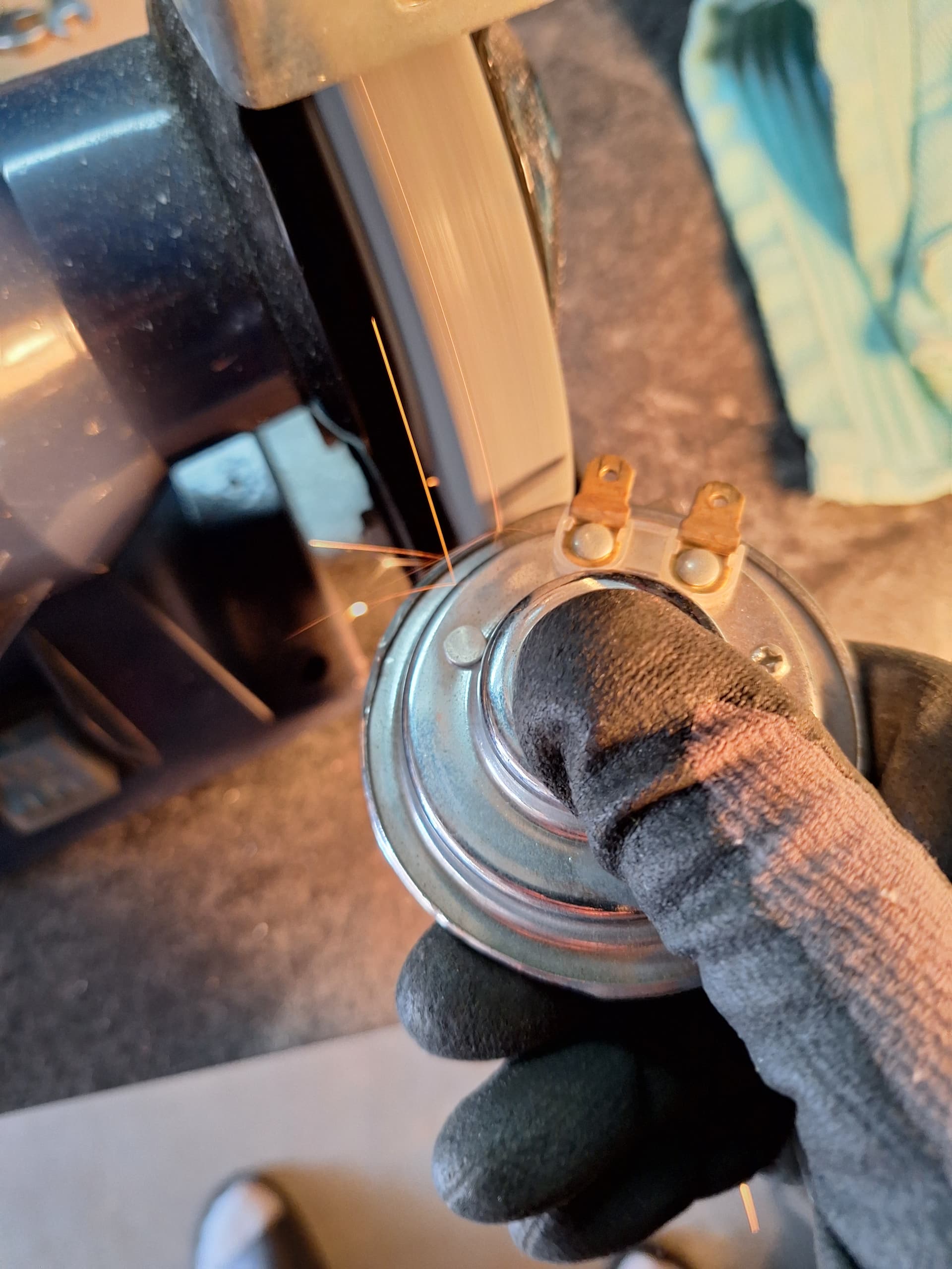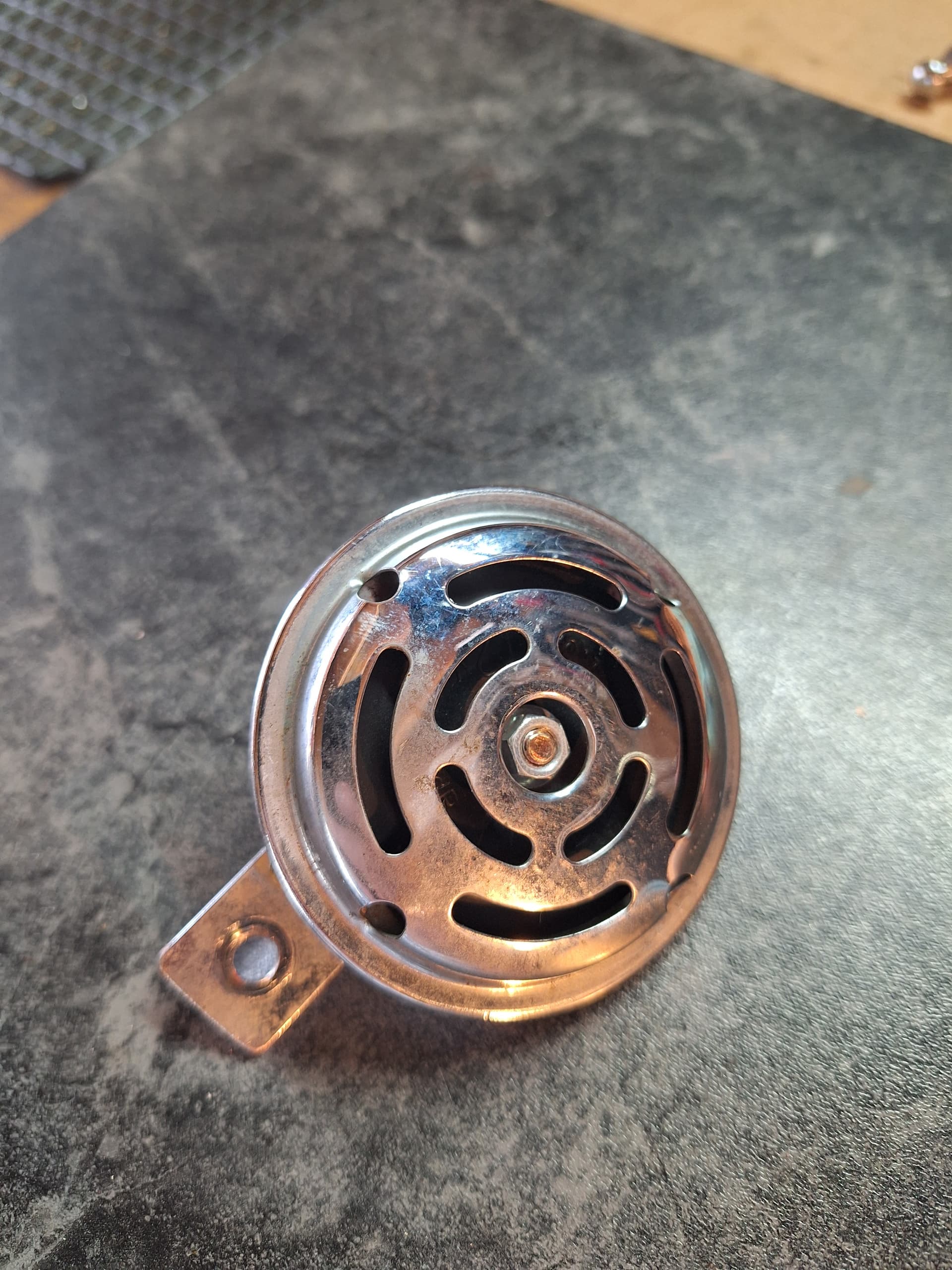 Kijk hier de oorzaak dat de claxon als een dronken Ier klonk. Puntjes ingebrand. Dus te weinig stroom door het spoeltje en dan klinkt deze te zacht.