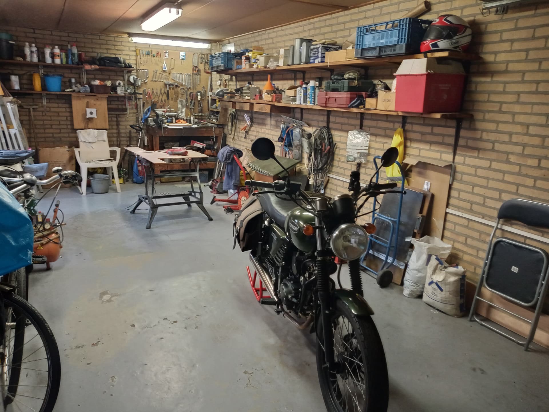 Ja laatste tijd komt er heel wat meer ruimte. Eerder stonden er nog een draaibank, kolomboormachine, een aanhanger en drie motoren in. Werd het ook wel eens krap om te sleutelen.