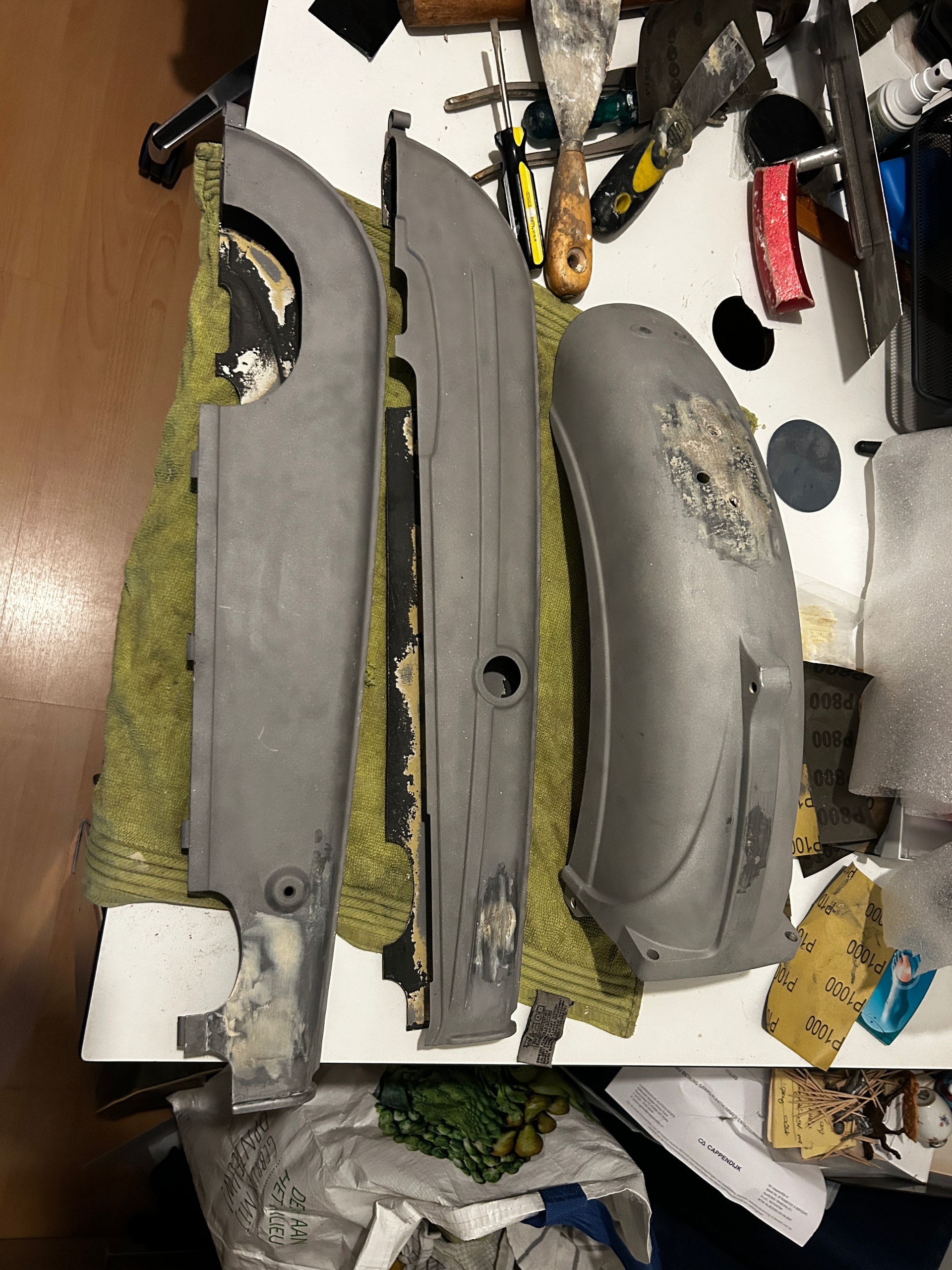 Ik durf het nog niet, nog nooit iets gespoten. Schuren en plamuren is wel gelukt. Ook is het nog te koud en nat in mijn schuurtje.