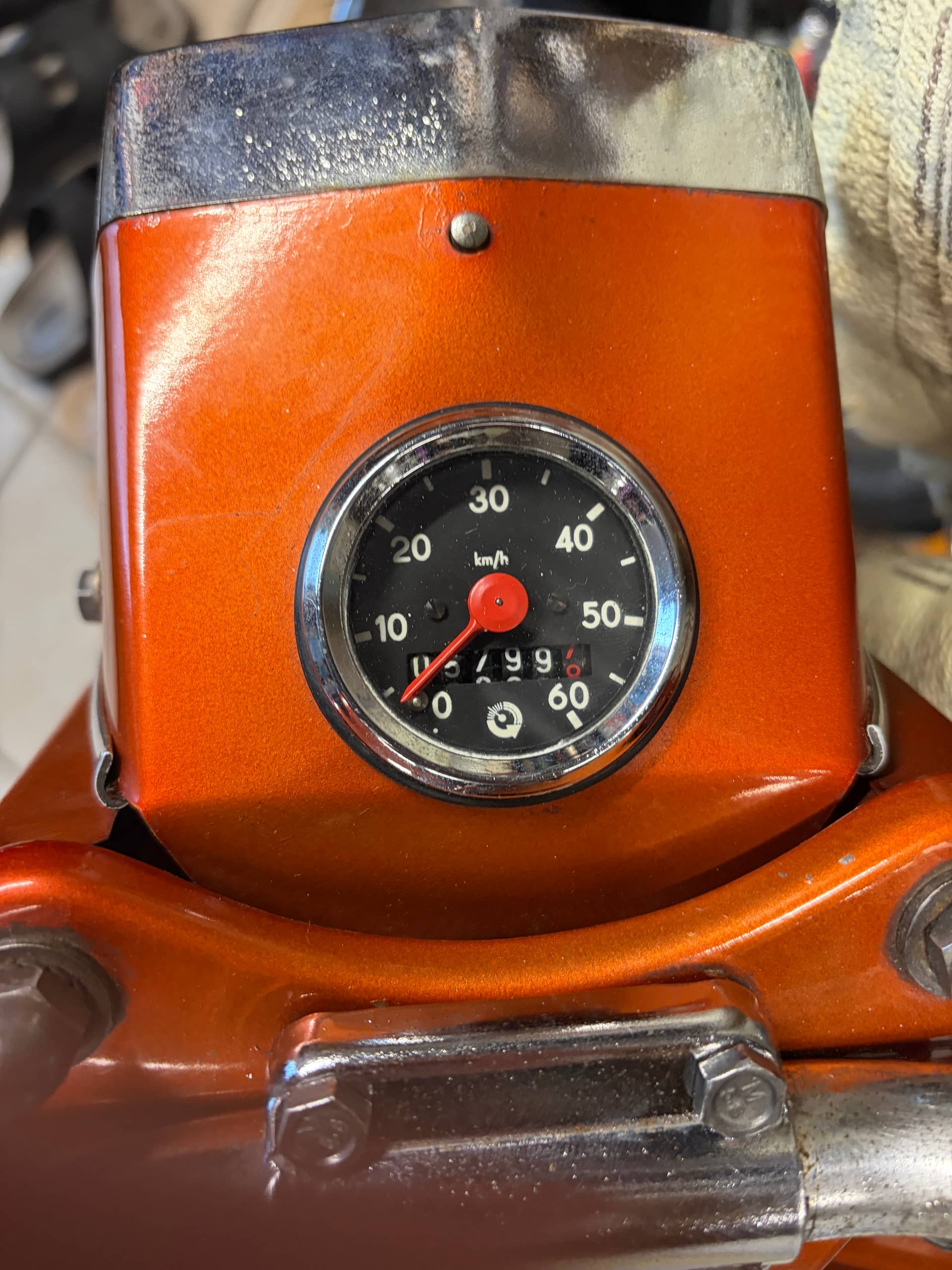 Als laatste vond ik tussen mijn verzameling onderdelen nog een mooi tellertje wat perfect paste. Van de week alleen even de snelheidskabel monteren en dan is dat ook weer geregeld. Al bij al weer een goed besteed avond gister.