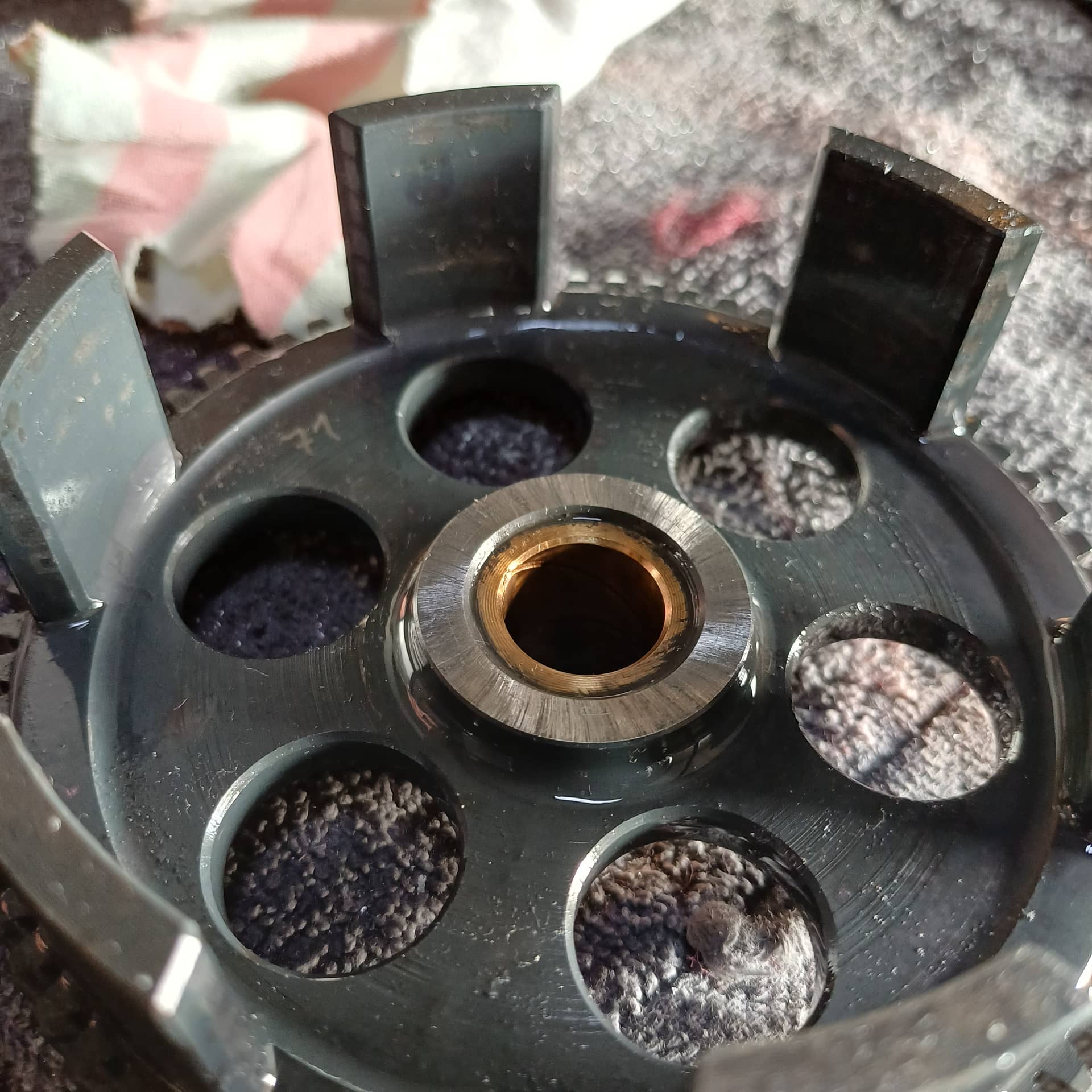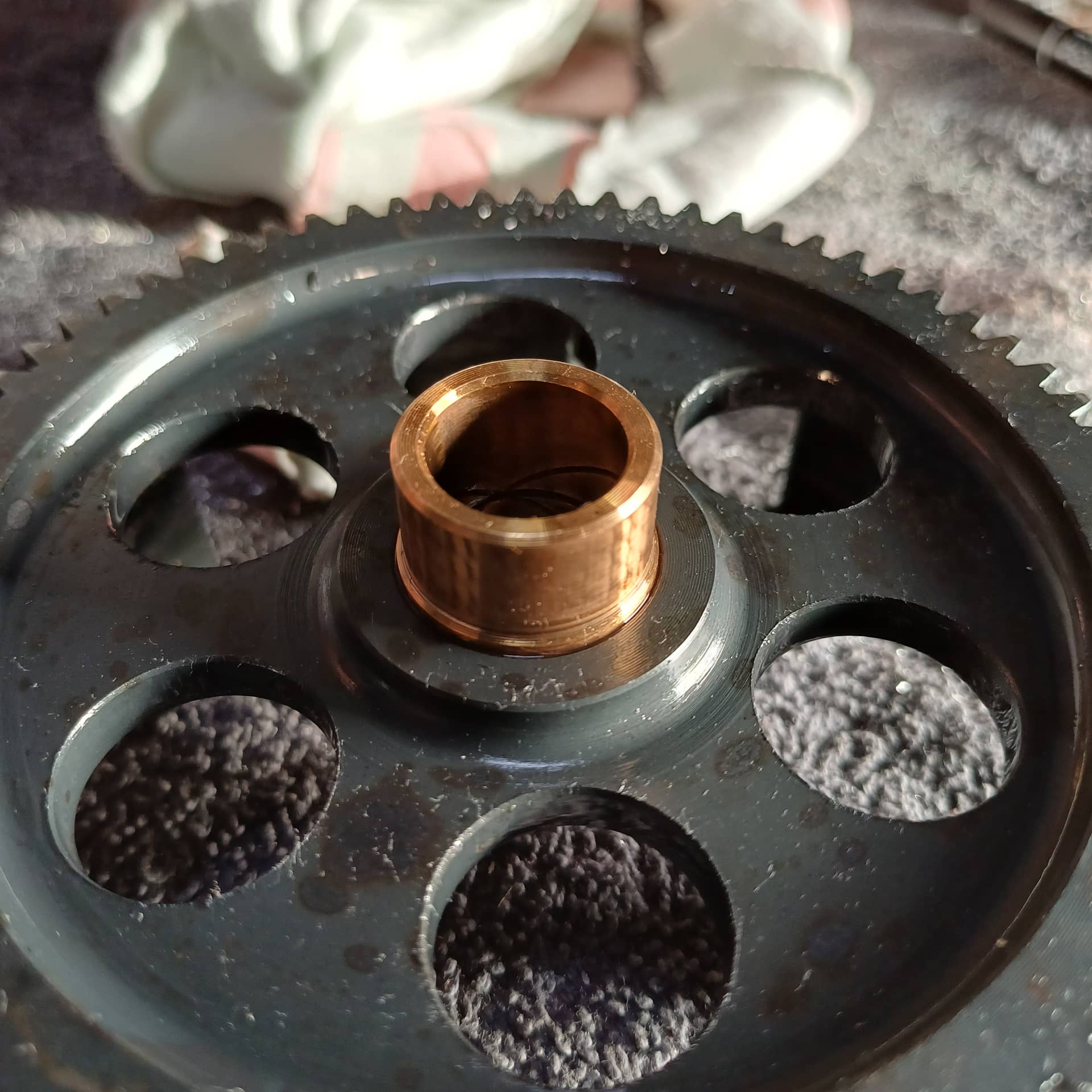 Knap gevonden. Daar denk je niet zo snel aan. Heeft het ook aangelopen, want ik zie daar slijtsporen en wat gruis, of heb ik het fout. Daardoor niet echt vrij komen en wat slecht schakelen? Ja, reche vertanding maakt zeker wat herrie, en dat beetje vermogenswinst is voor ons niet echt belangrijk.