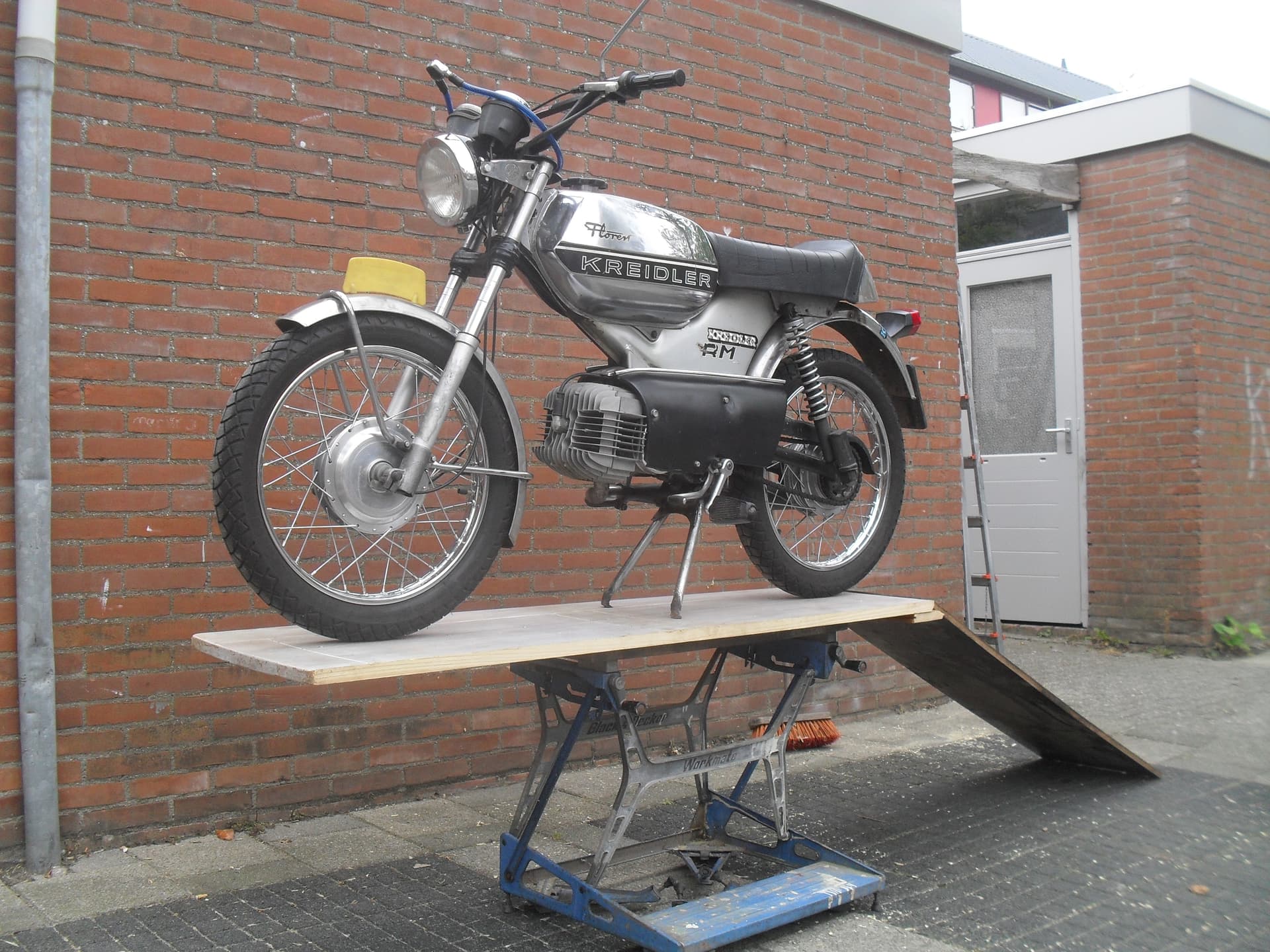 Ja dat concept werkt ook prima voor n brommer mits je t een beetje ondersteund want ik merkndat het bovenblad met de brommer wel de neiging heeft te kantelen omdat het veel breder is dan het onderstel van de workmate.