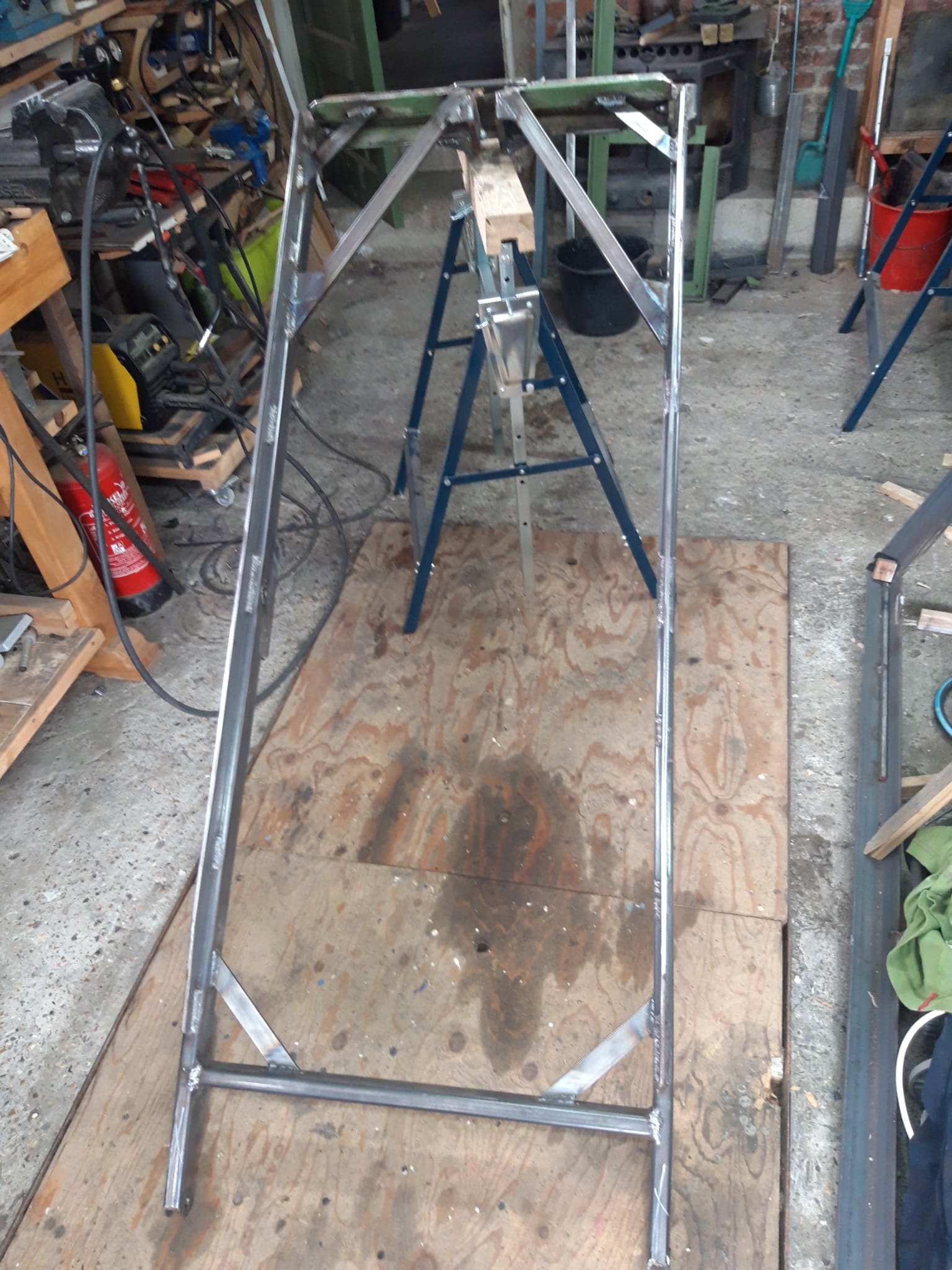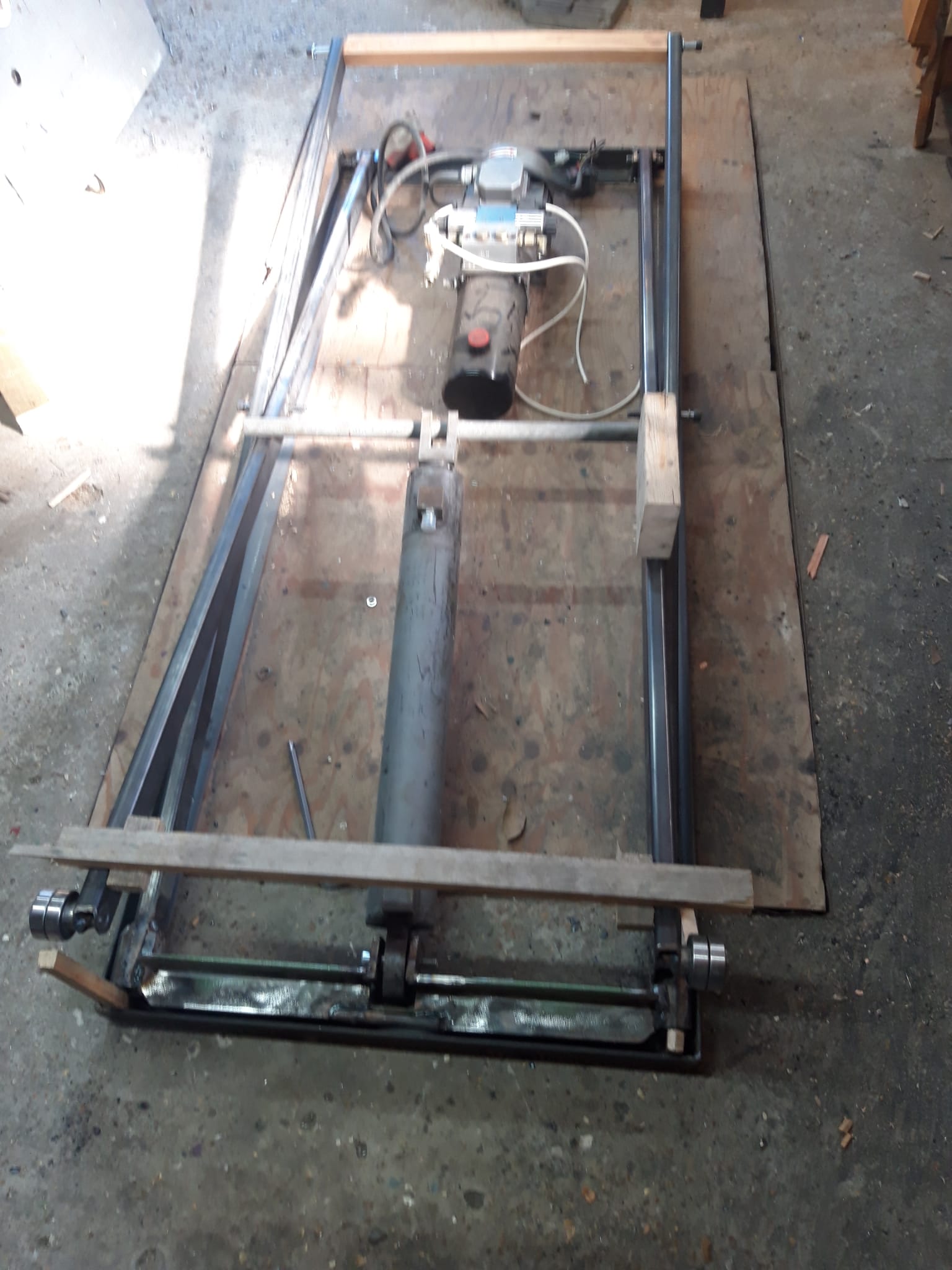Nog niet alles definitief gelast eerst in elkaar gezet om het draaipunt/drukpunt zuigerstang te bepalen.