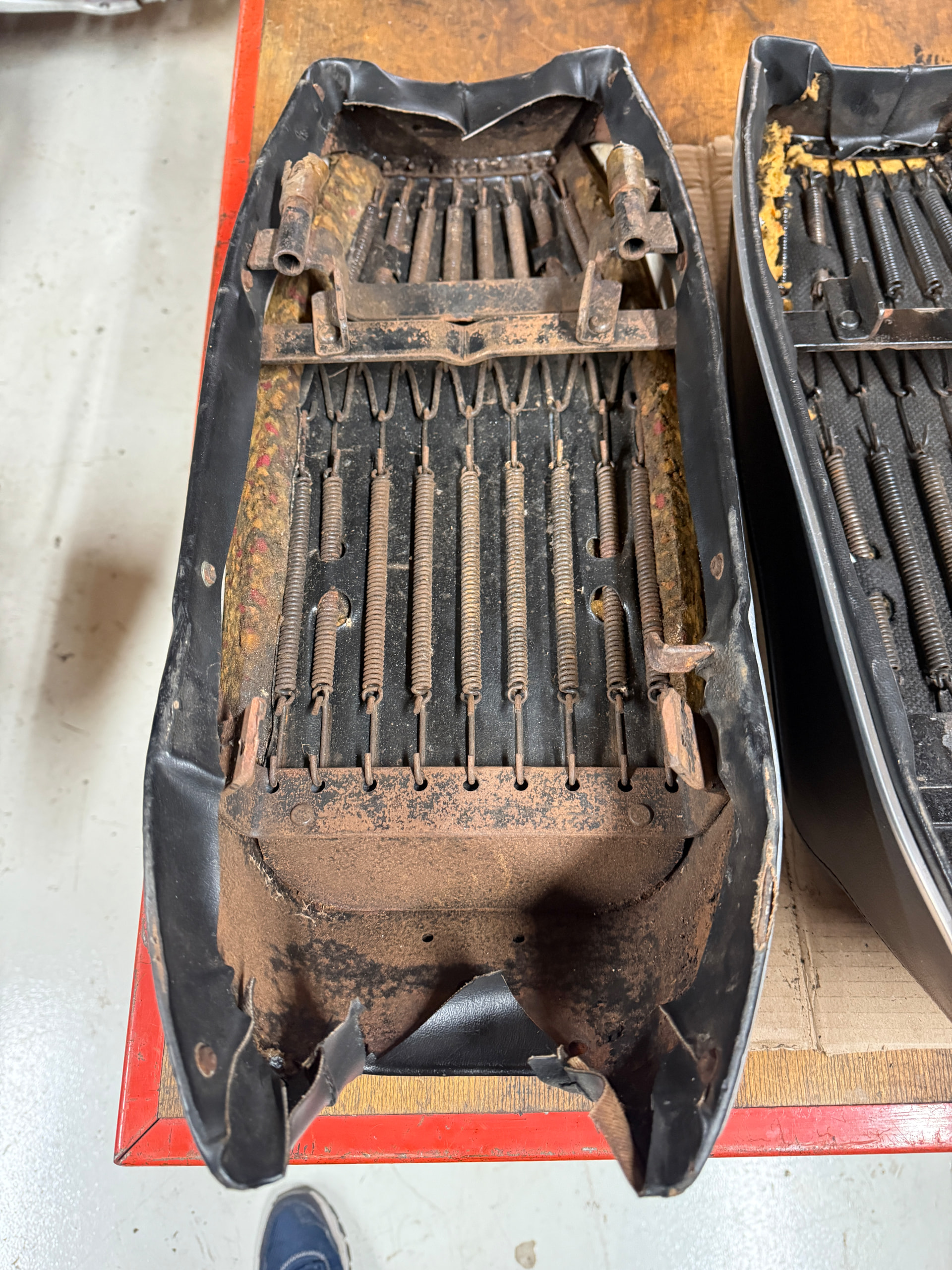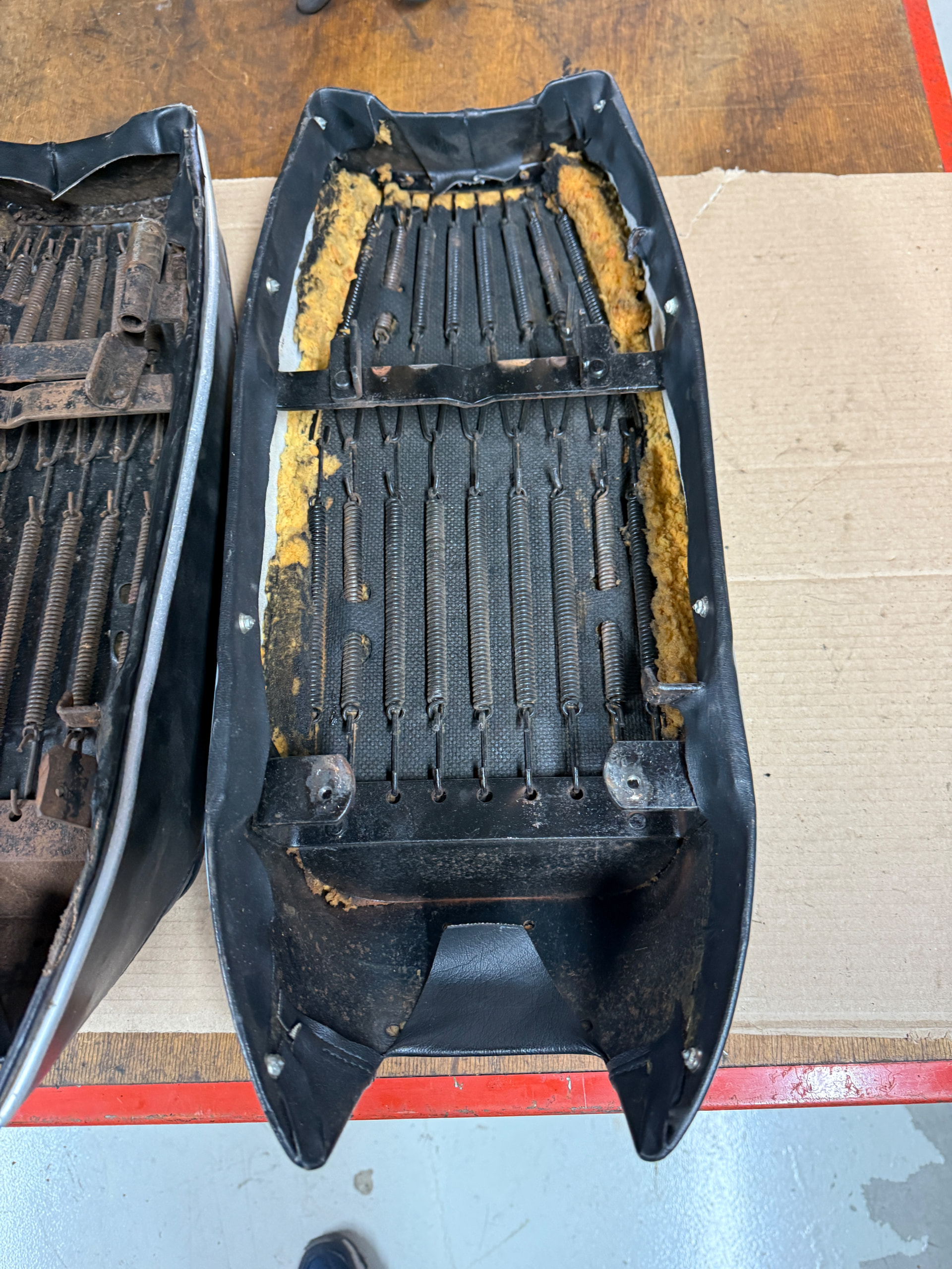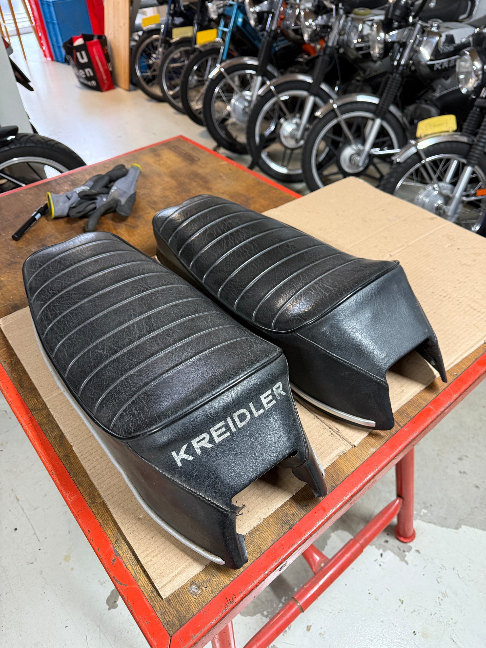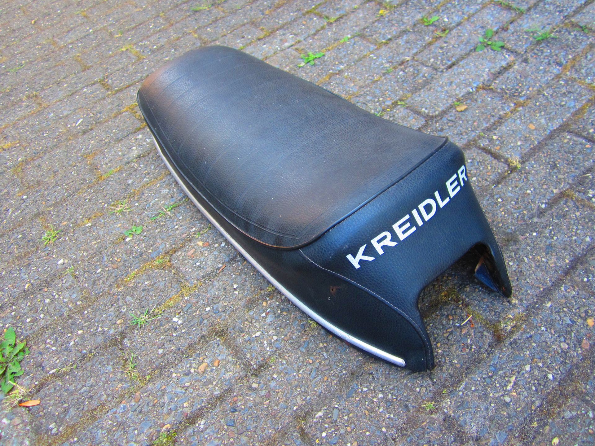 Ik zit lekker bij de kachel mijn spullen te ordenen. Nu heb ik twee verschillende Francorchamps zadels. De rechtste is mijns inziens het normale type. De linker heeft aan de voorkant een soort van hulpstuk. Waar zou deze nou voor gebruikt zijn? Is dat voor een Kreidler?