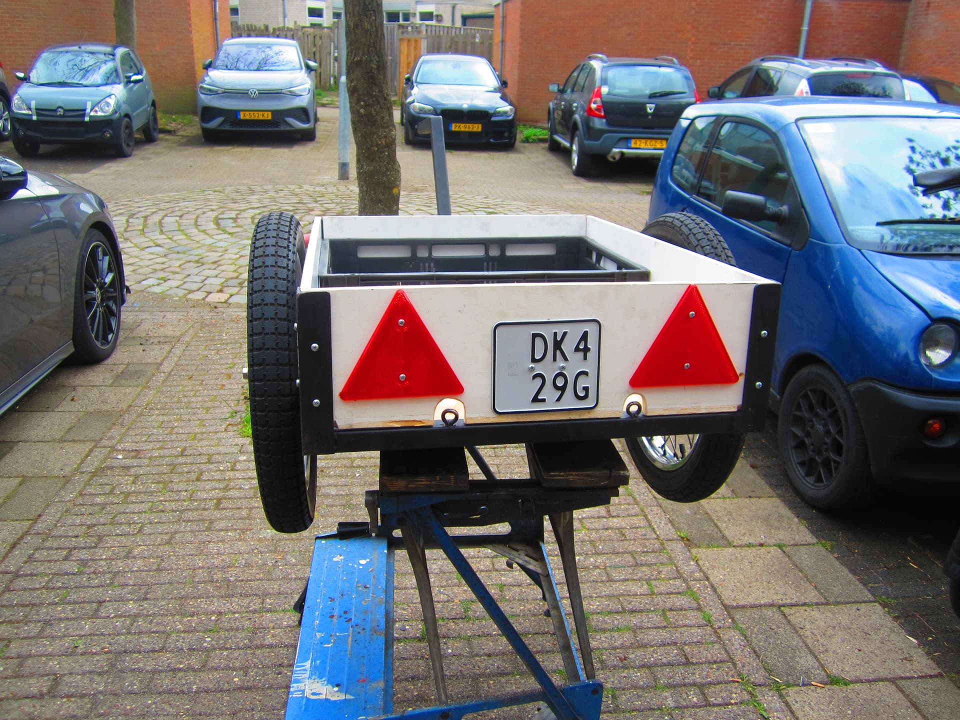Vandaag even naar van der Peijl voor een witte bromfiets plaat voor op de aanhang wagen .