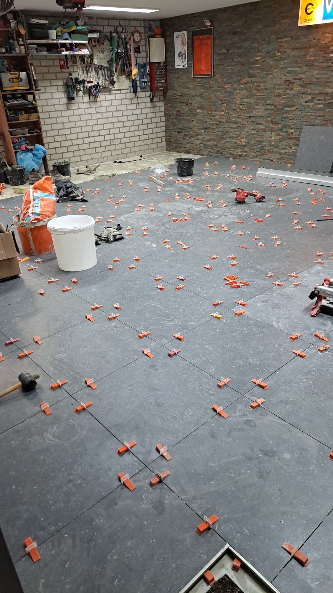 Lijkt wel of je eerst alles nog kaal gemaakt hebt voor de primer er op ging. redelijk zakje tegel lijm schat ik in. Zijn het Hardgebakken tegels en dikte? Ik twijfel nog wat ik met mijn vloer ga doen. Is nu beton met aanhechting naden, dit staat erg strak.