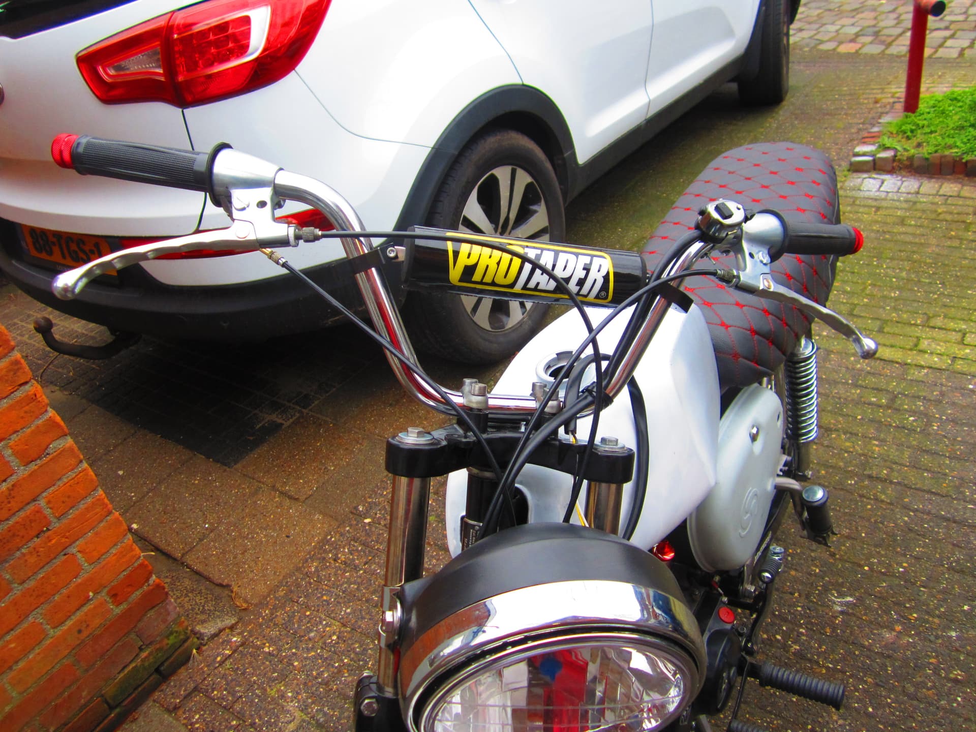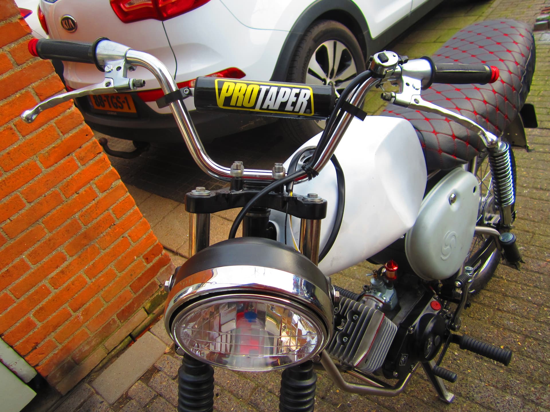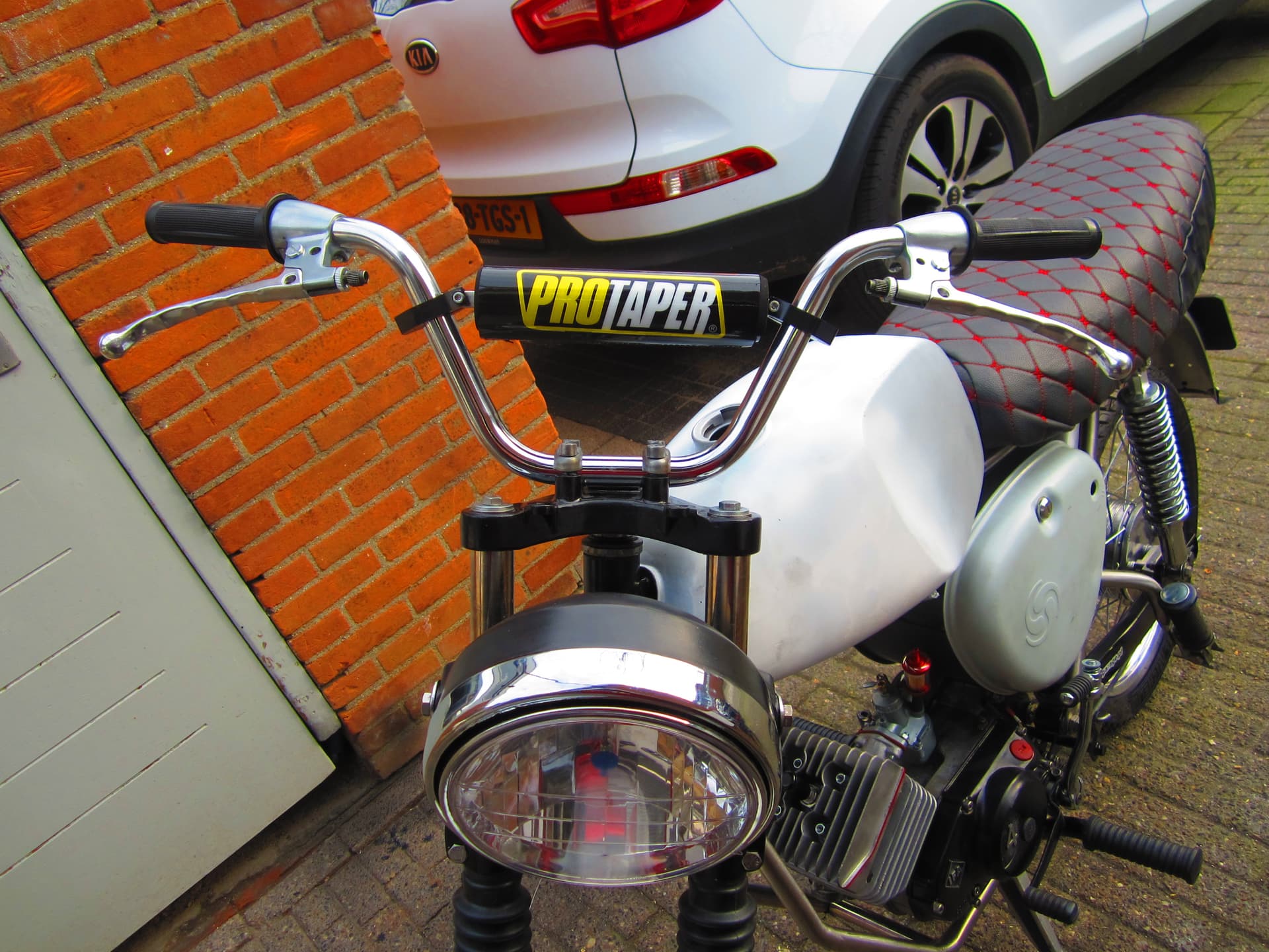 De voorkant van de Simson aangepakt handels er op ,was al van Maandag van plan om de kabels er op te zetten maar kwam er maar niet van .