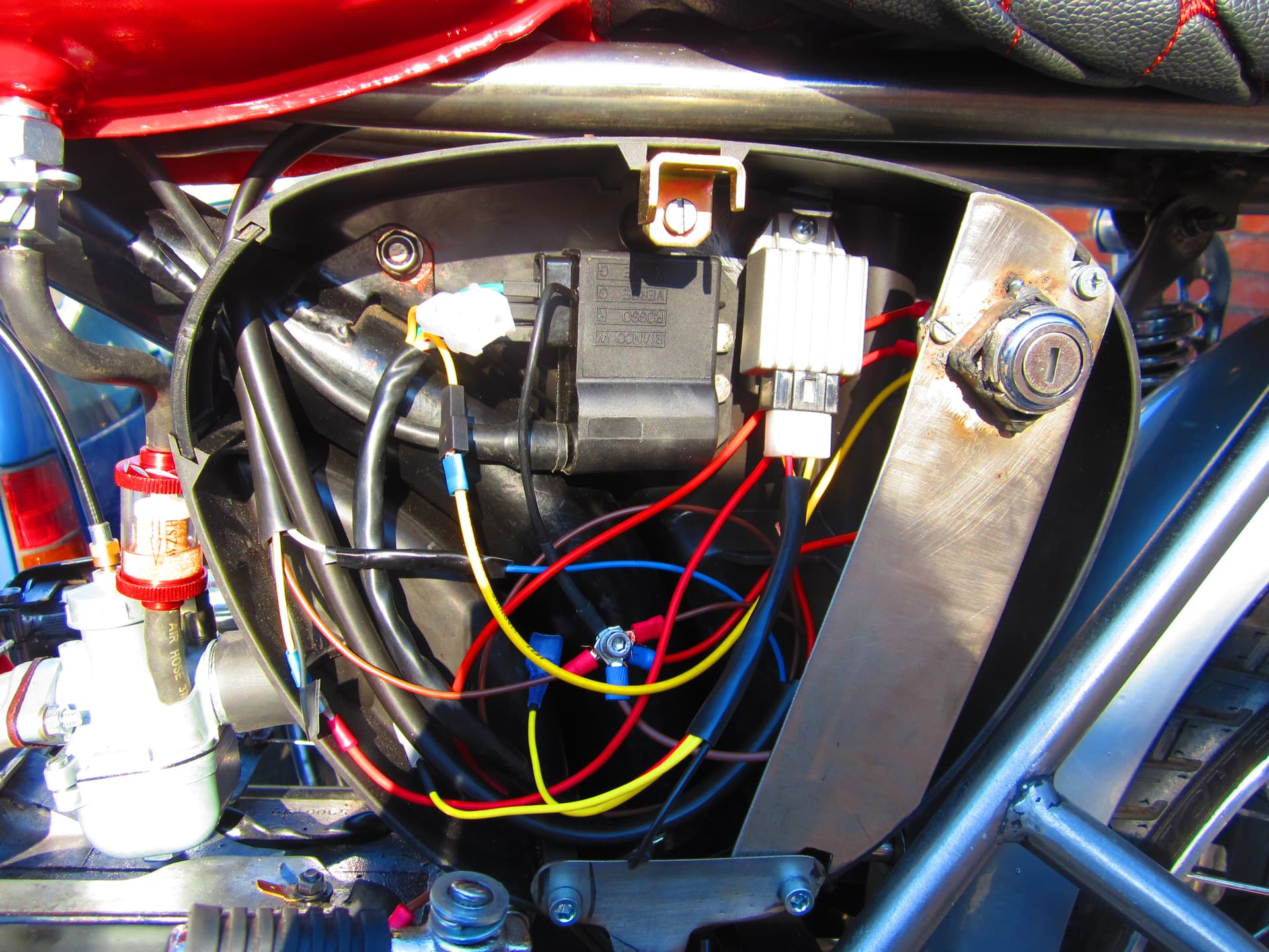 Gister de verlichting laten werken van de Simson S 51 pak ik het doosje waar het geheel in zat ,.spannings regelaar vergeten dus die deze morgen er in gezet .