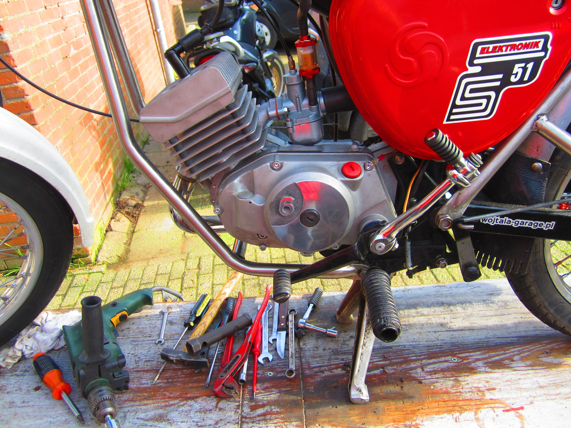 Dus mezelf maar opgesloten in mijn schuurtje kachel aan en het blok van de Simson S 51 reviseren .