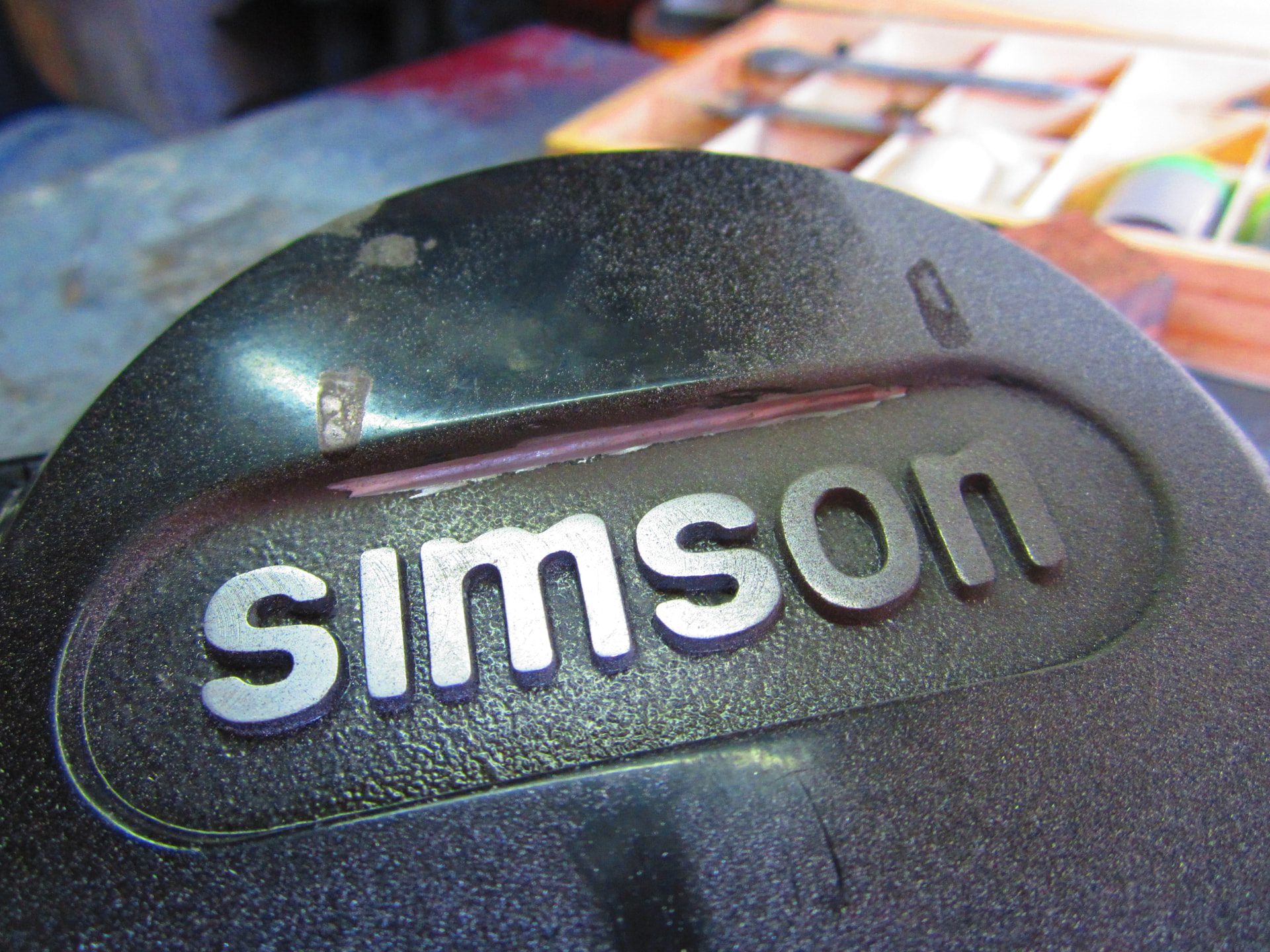 Dus mijn kleinste doorslijpschijfje gepakt en aan de slag ,heb net onder de rand waar Simson staat een gleuf gemaakt schuin naar boven dit inverbant met water overlast ,de gleuf is 1,8 mm breed en bijna niet te zien vanaf de buiten kant .
