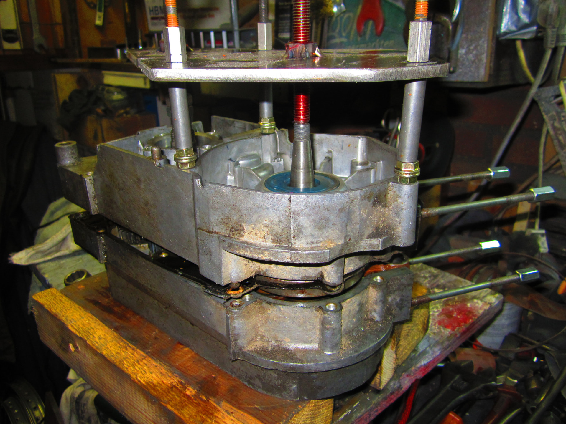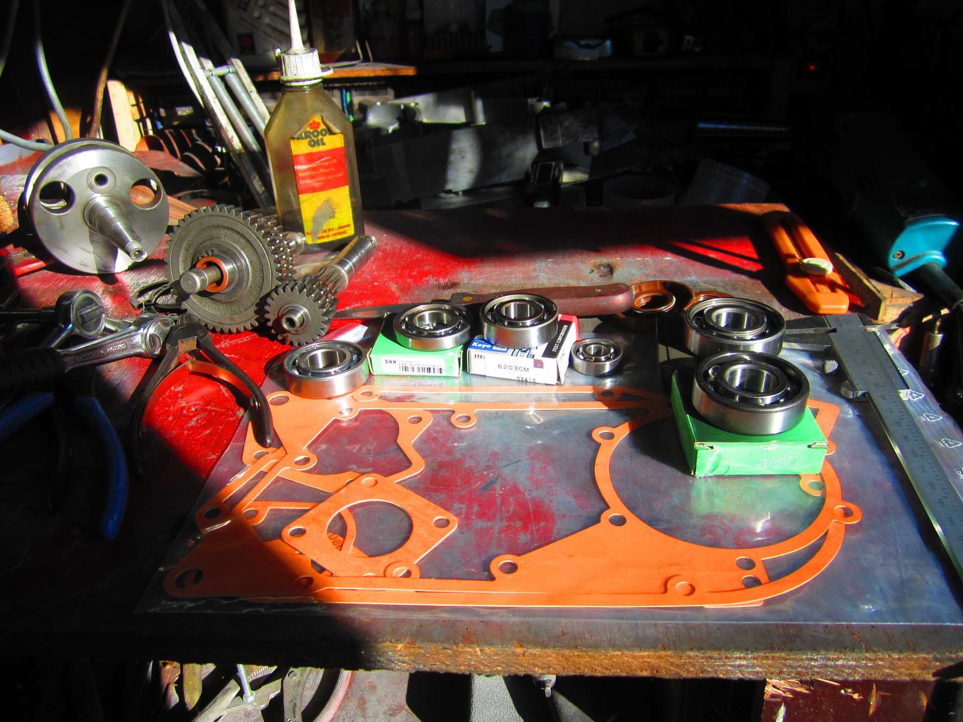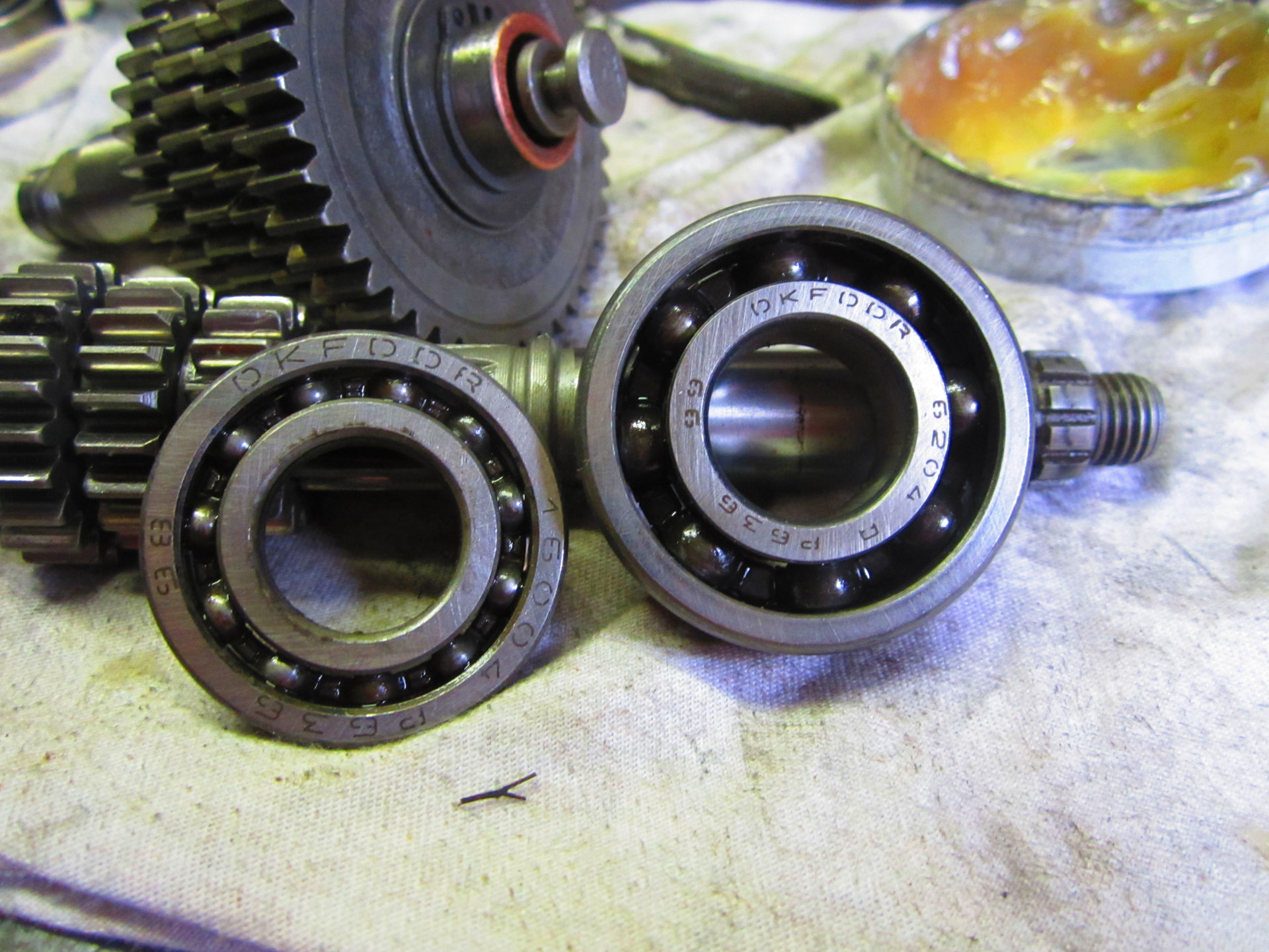 Wat mij opvalt is dat die 2 lagers al op de assen zitten. Normaal zitten ze toch in het carterdeksel en dan monteren. Hoe zit het dan met uitshimmen? Of zitten de lagers wat losser in het carter?