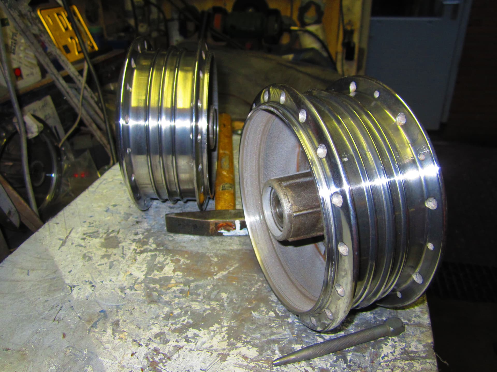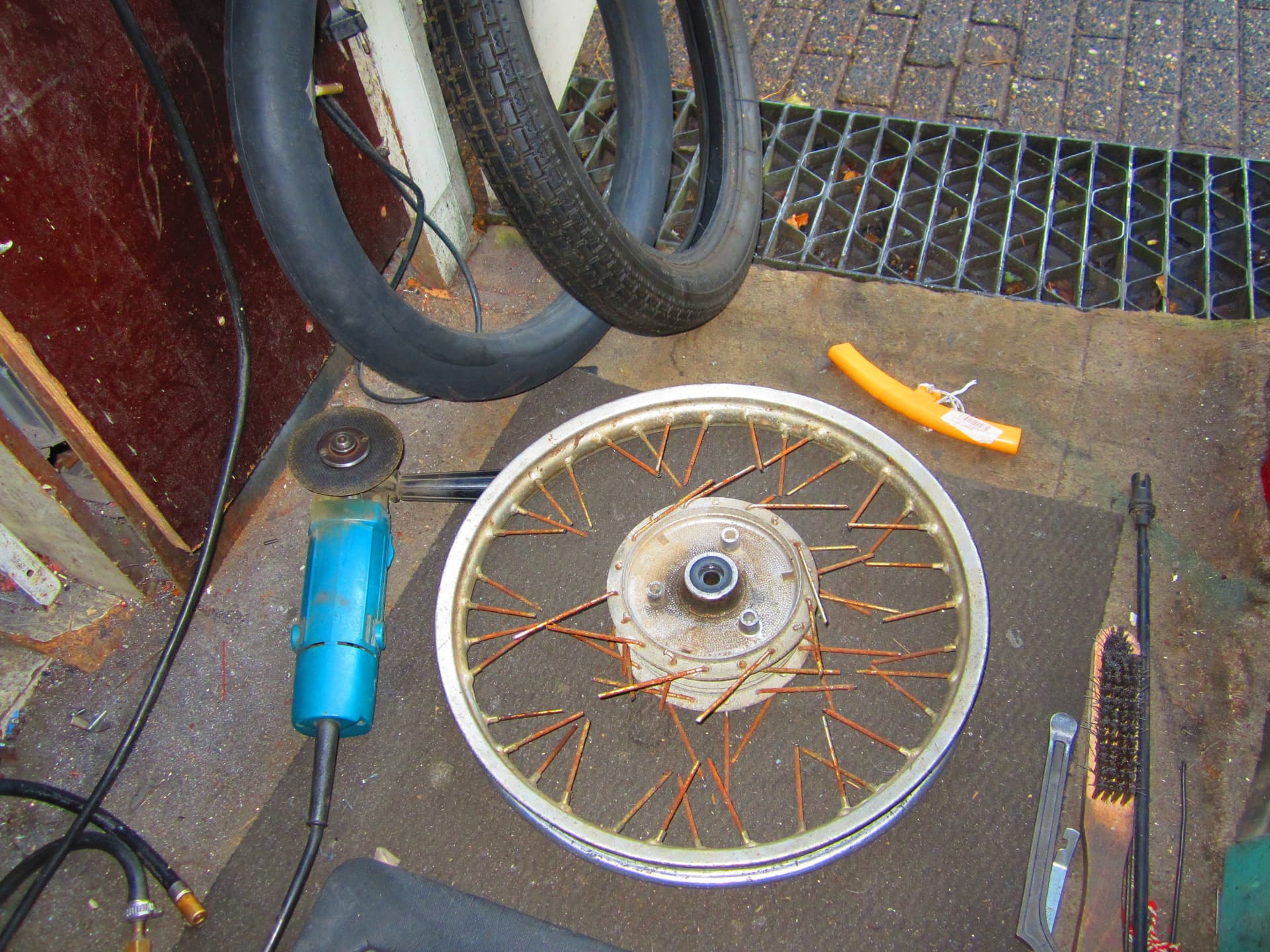 Vandaag de wielen van de Simson aangepakt ,spaken er uit velgen gepoetst naven gepoetst .