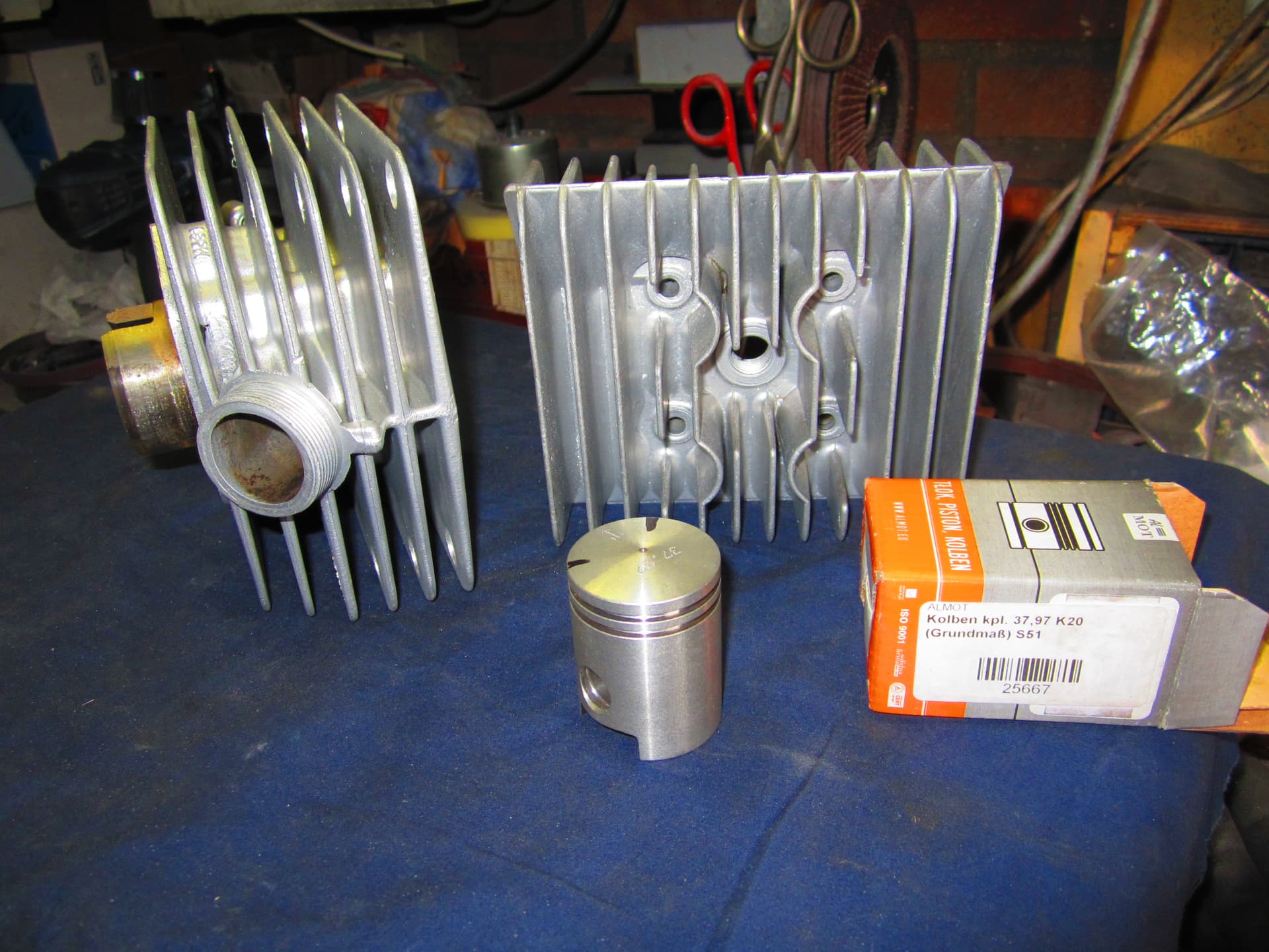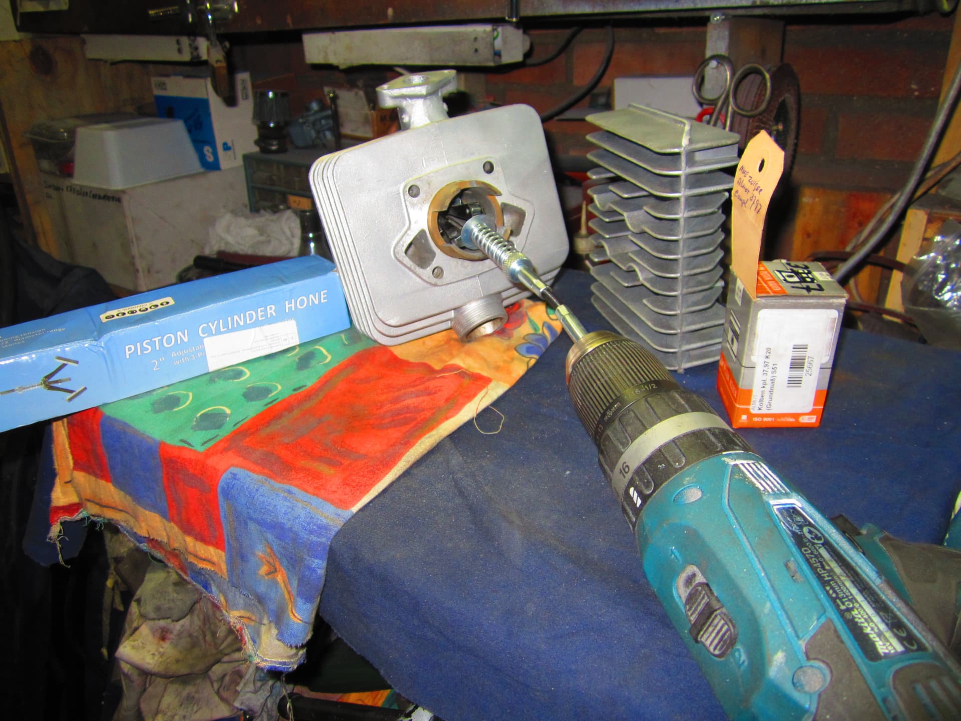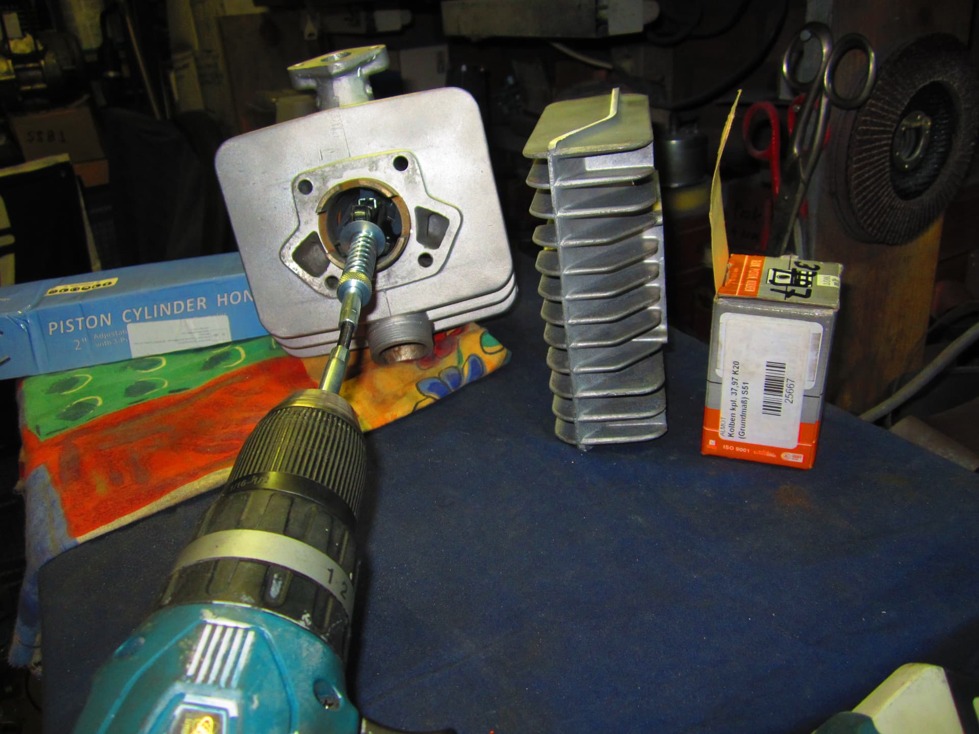 Deze week het cilindertje gehoond en de nieuwe zuiger er in gepast ,er zat een stoot randje in de cil ,aan de boven kant .
