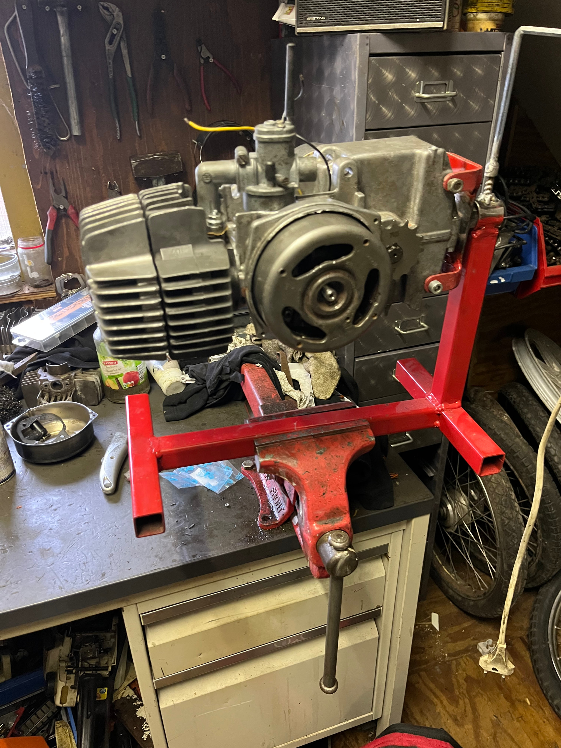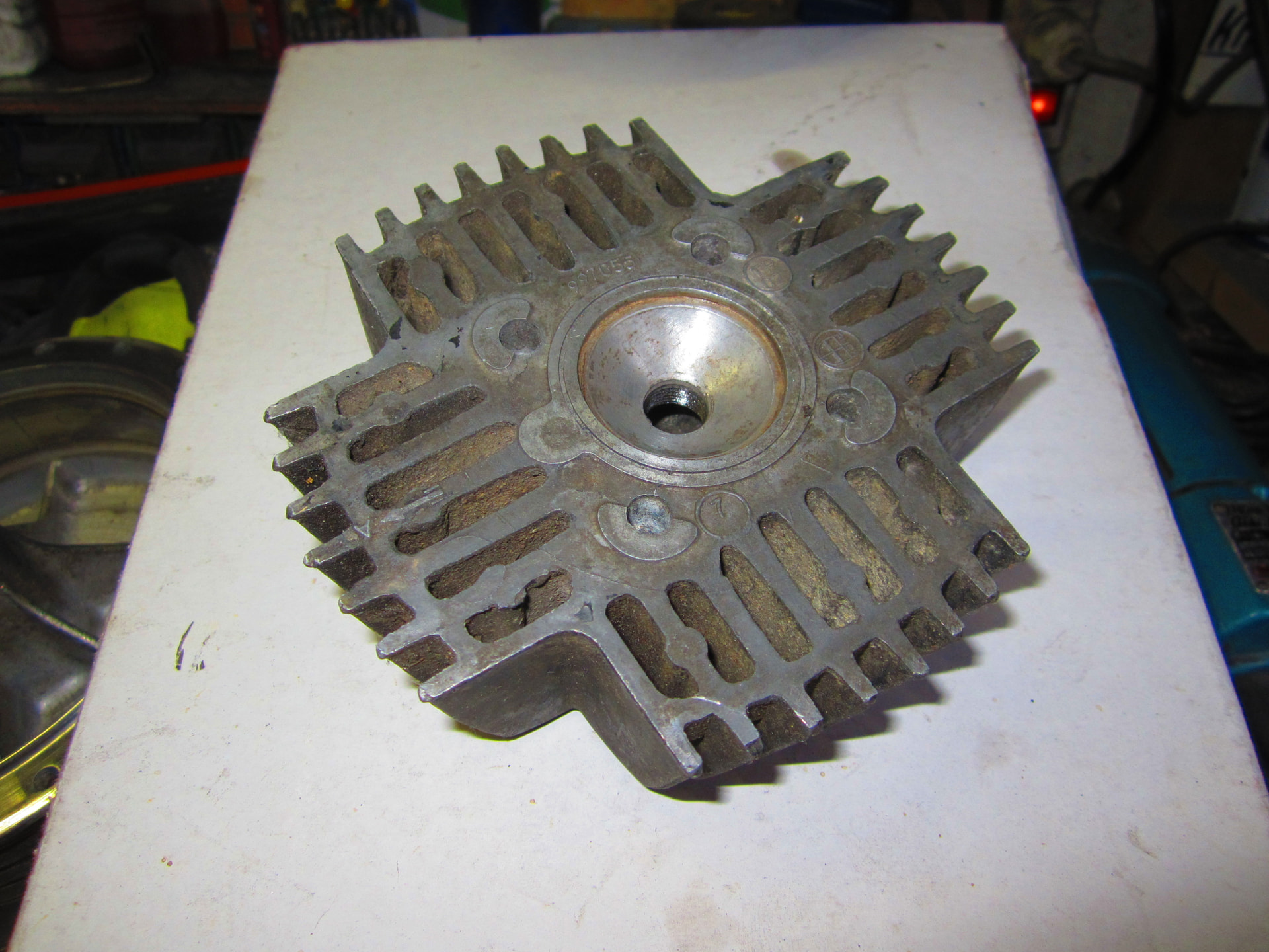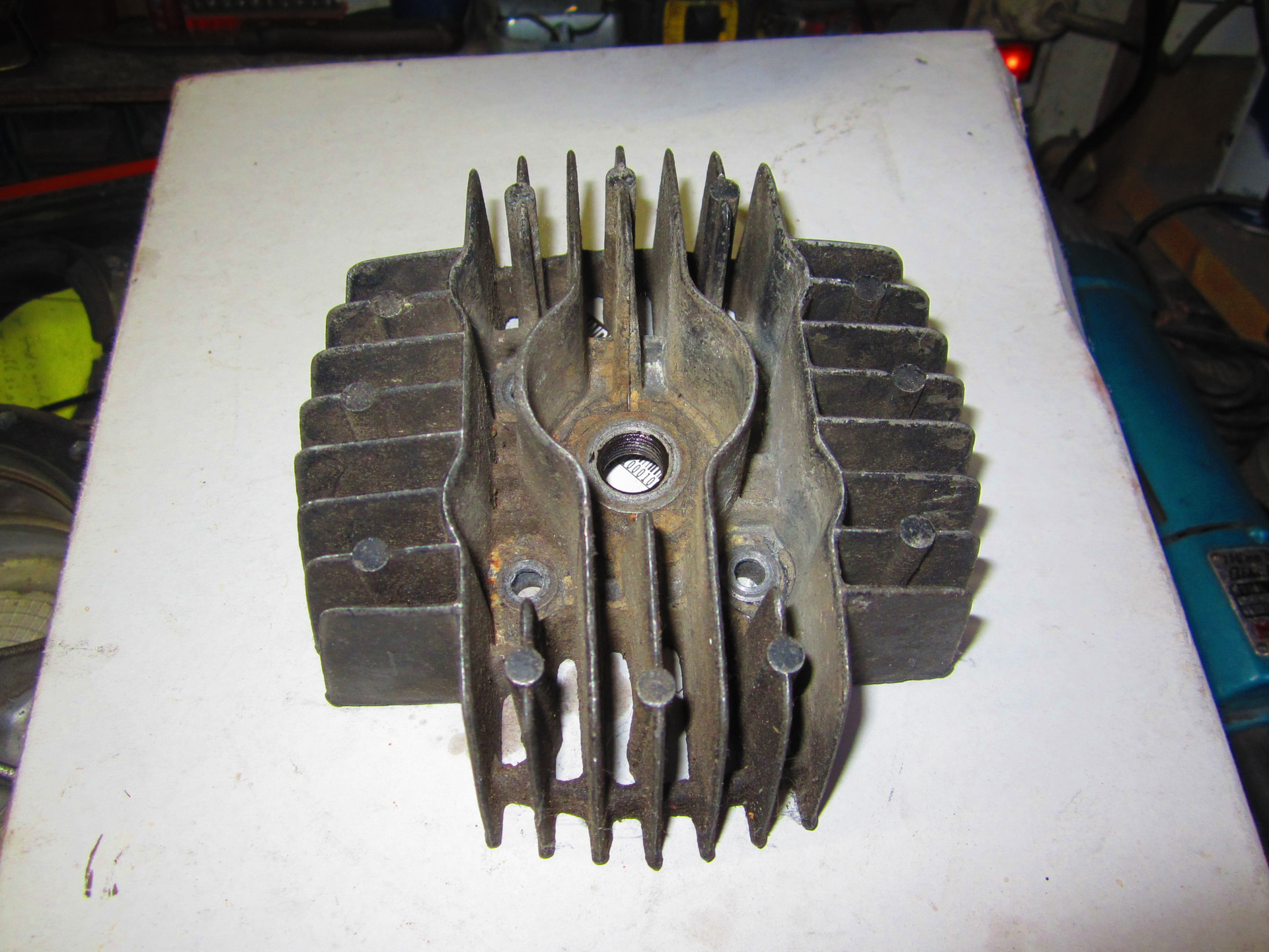 Ik ben ondertussen weer een eindje verder gekomen. Het blok is zo goed als af. En ontsteking is afgesteld. Heb ik net de cilinderkop netjes schoongemaakt en gemonteerd, kom ik erachter dat ze een keer een bougie er scheef in hebben gedraaid waardoor het bougiegat nu naar de vernieling is. Tja dat had ik beter voor het schoonmaken kunnen ontdekken.. Dus dat wordt weer een nieuwe kop.