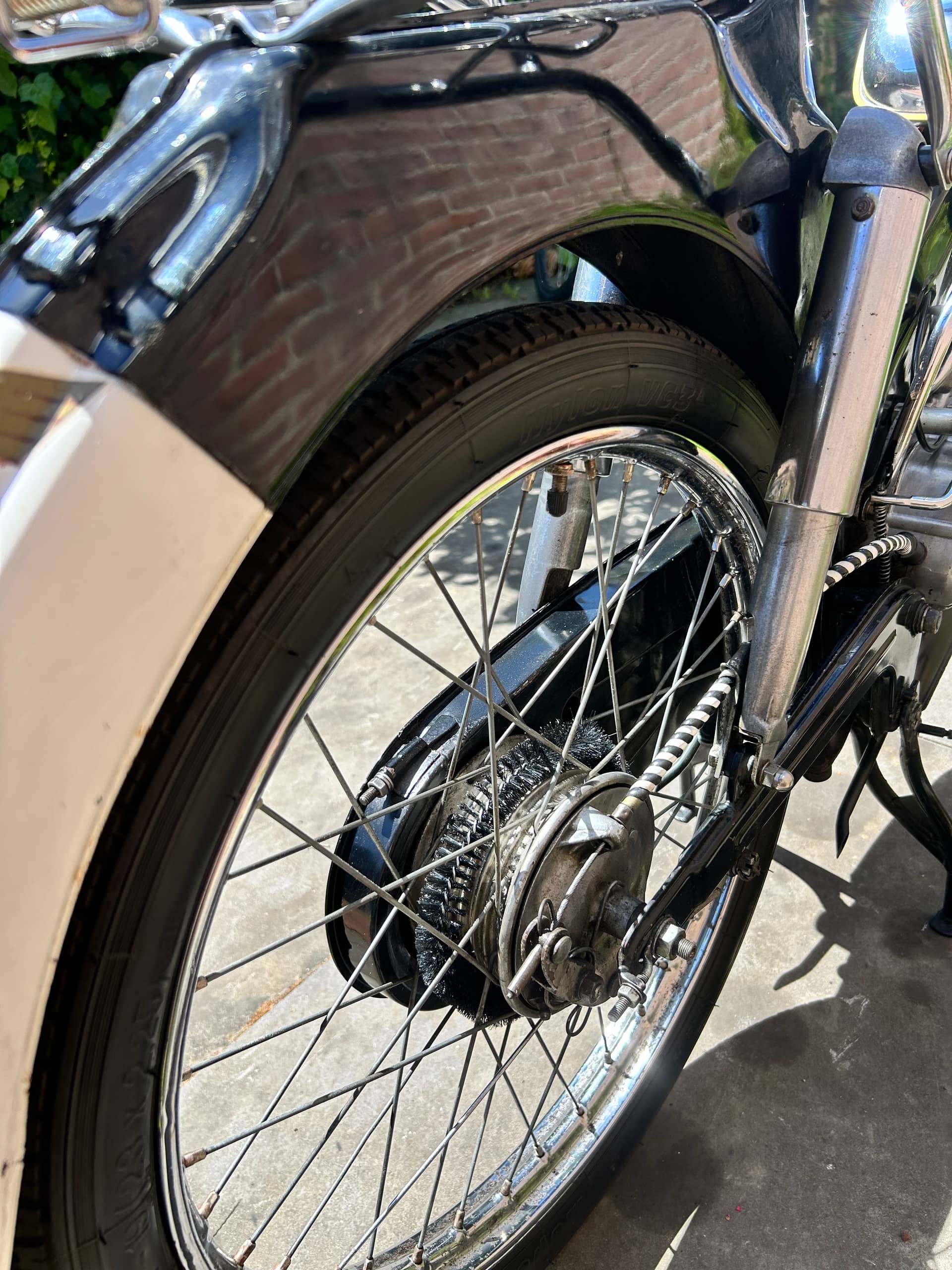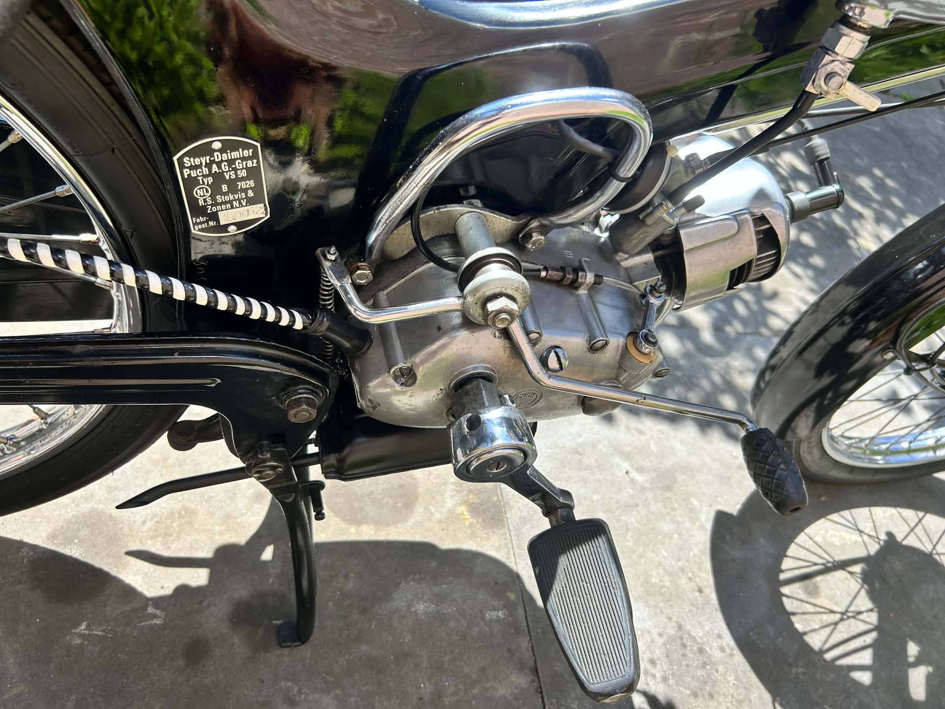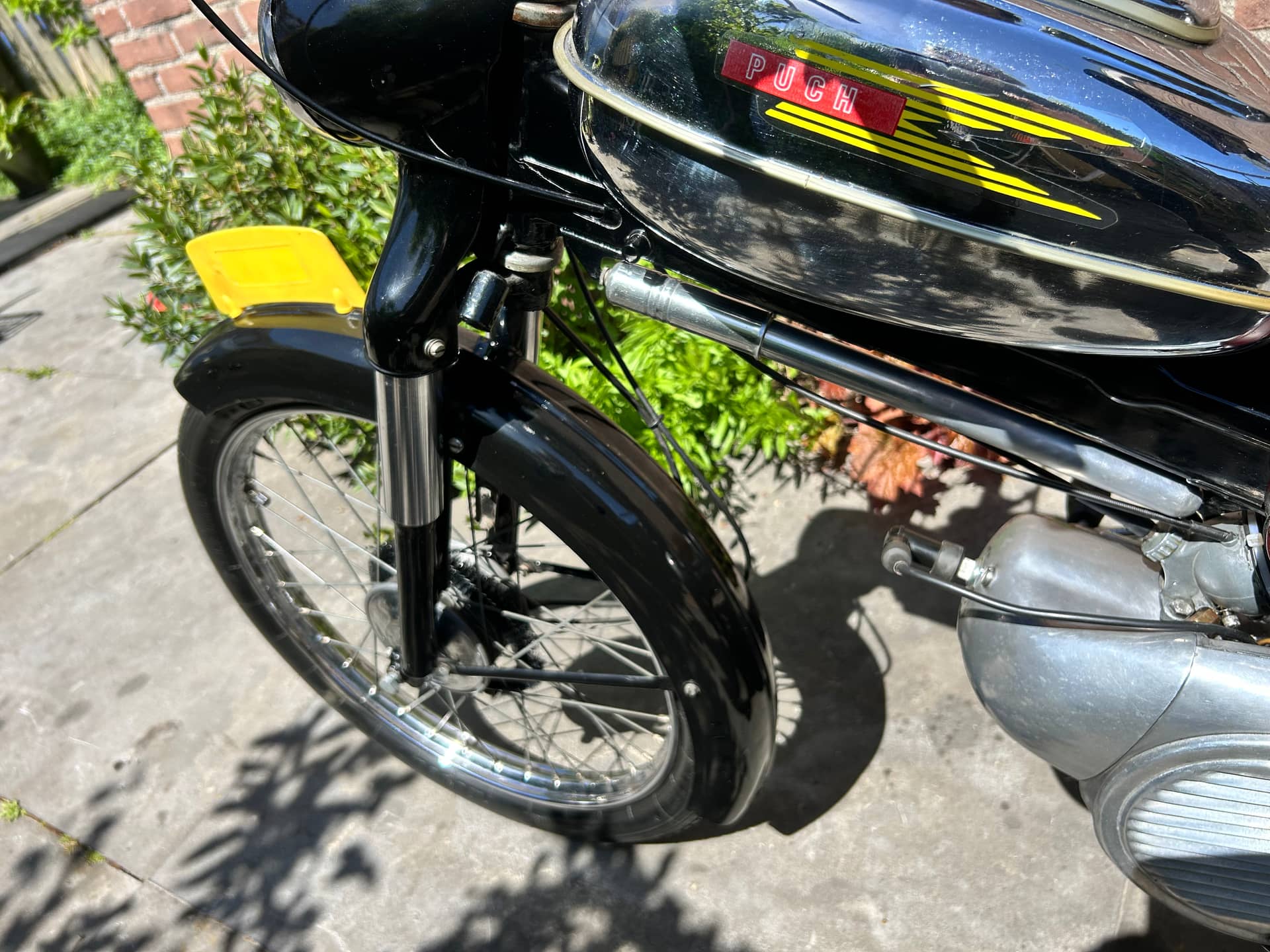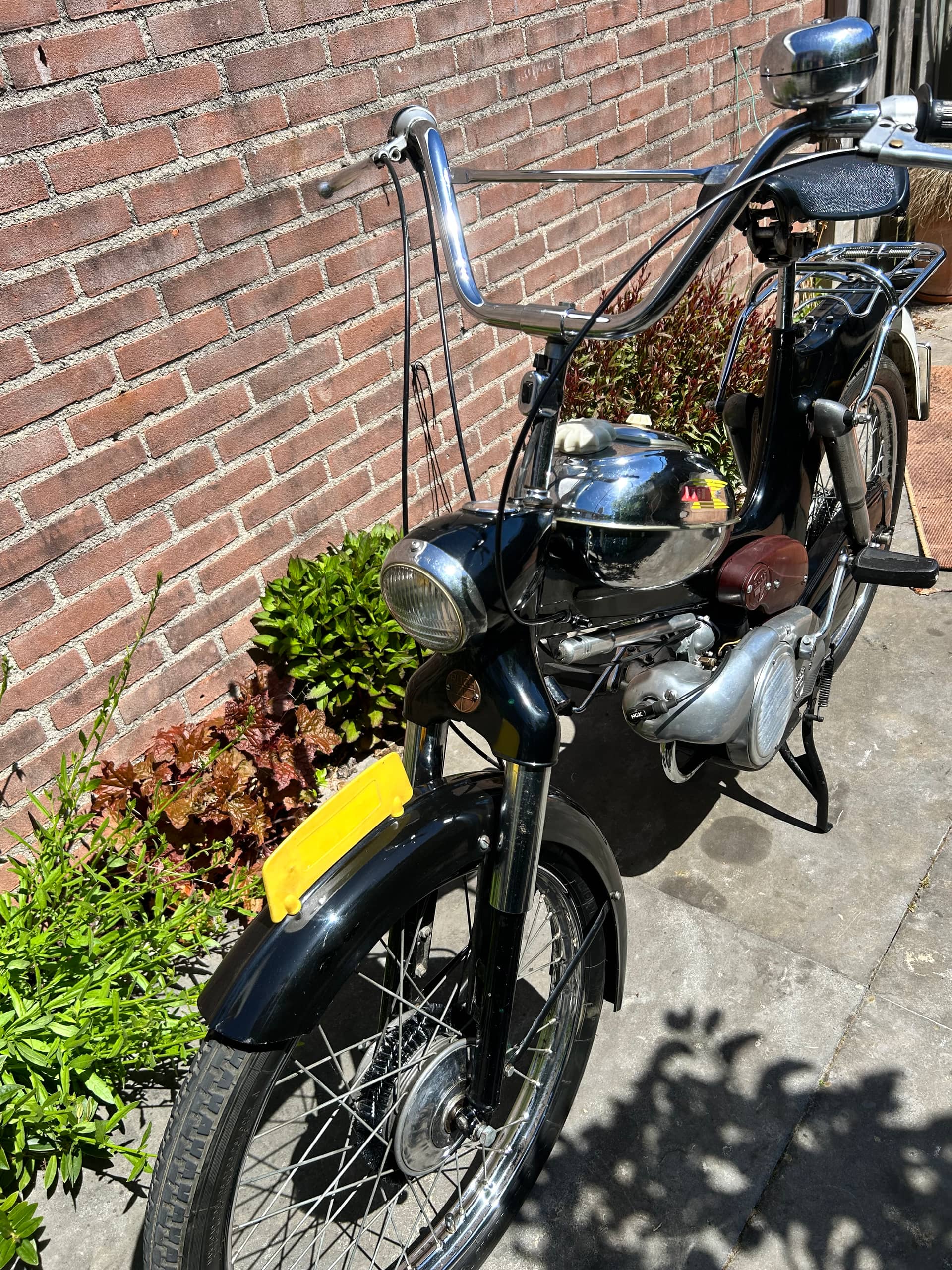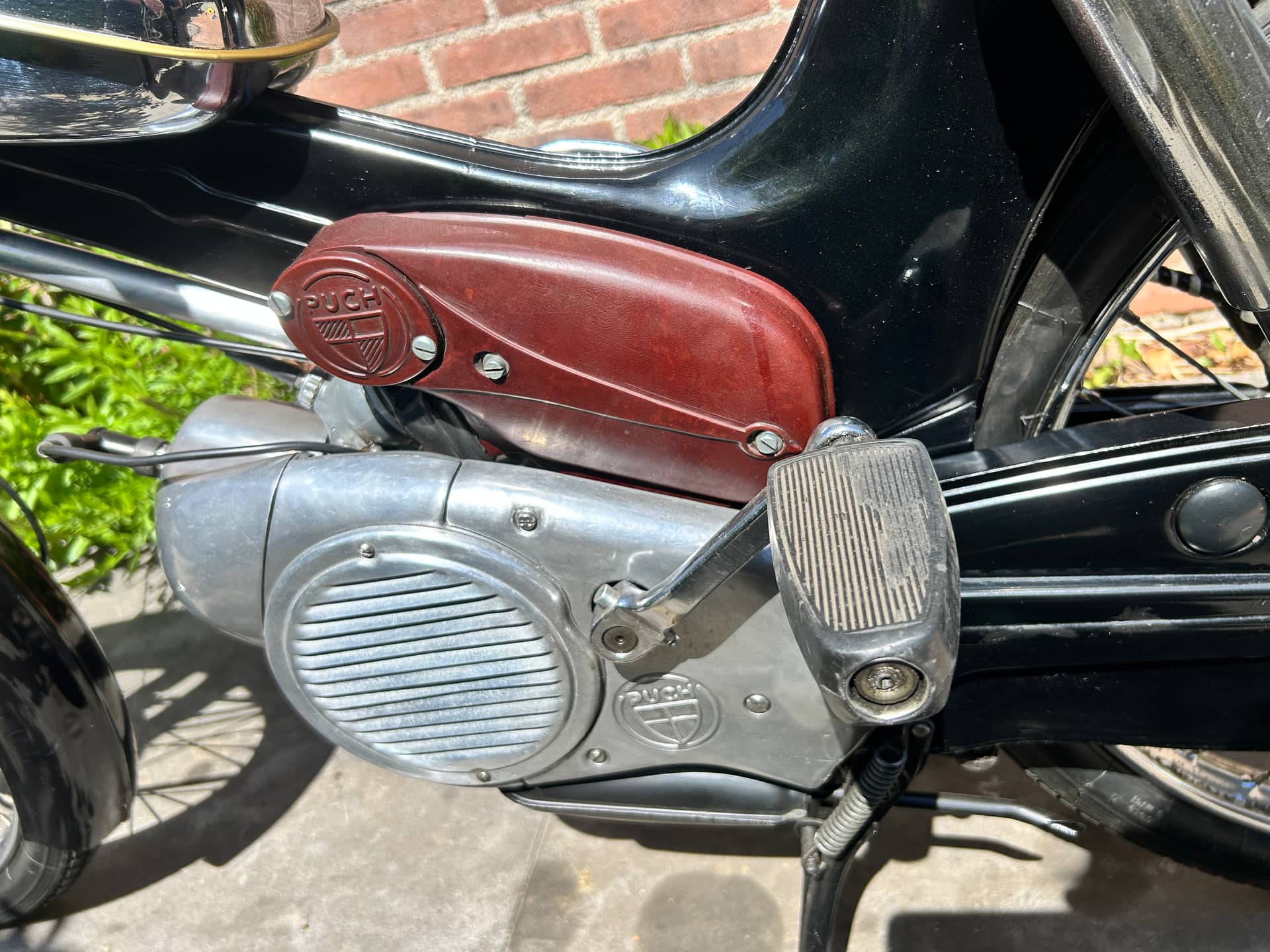 Te Puch VS 50 (1967) in technisch goede staat. Het motorblok is 6 weken geleden gereviseerd. De carburateur is afgelopen najaar gereviseerd. Het zadeldek is vervangen, het originele zadeldek wordt meegeleverd. De achterveren zijn vervangen, de originele veren zitten erbij. De pot is vervangen, de oude pot zit erbij. Tevens is de standaard vervangen, de oude standaard zit erbij. De bobine is vervangen tijdens de revisie van het blok (binnenin was nog goed, maar er is wel een nieuwe pakking gebruikt). De brommer is omgebouwd van twee handversnellingen naar twee voetversnellingen. Hij rijdt iets sneller dan normaal. De zadelpen is vervangen ivm lengte. De brommer heeft een kenteken en wordt wekelijks meermaals gebruikt. Te koop vraagprijs 1250 euro, rijdt prima en is best snel,