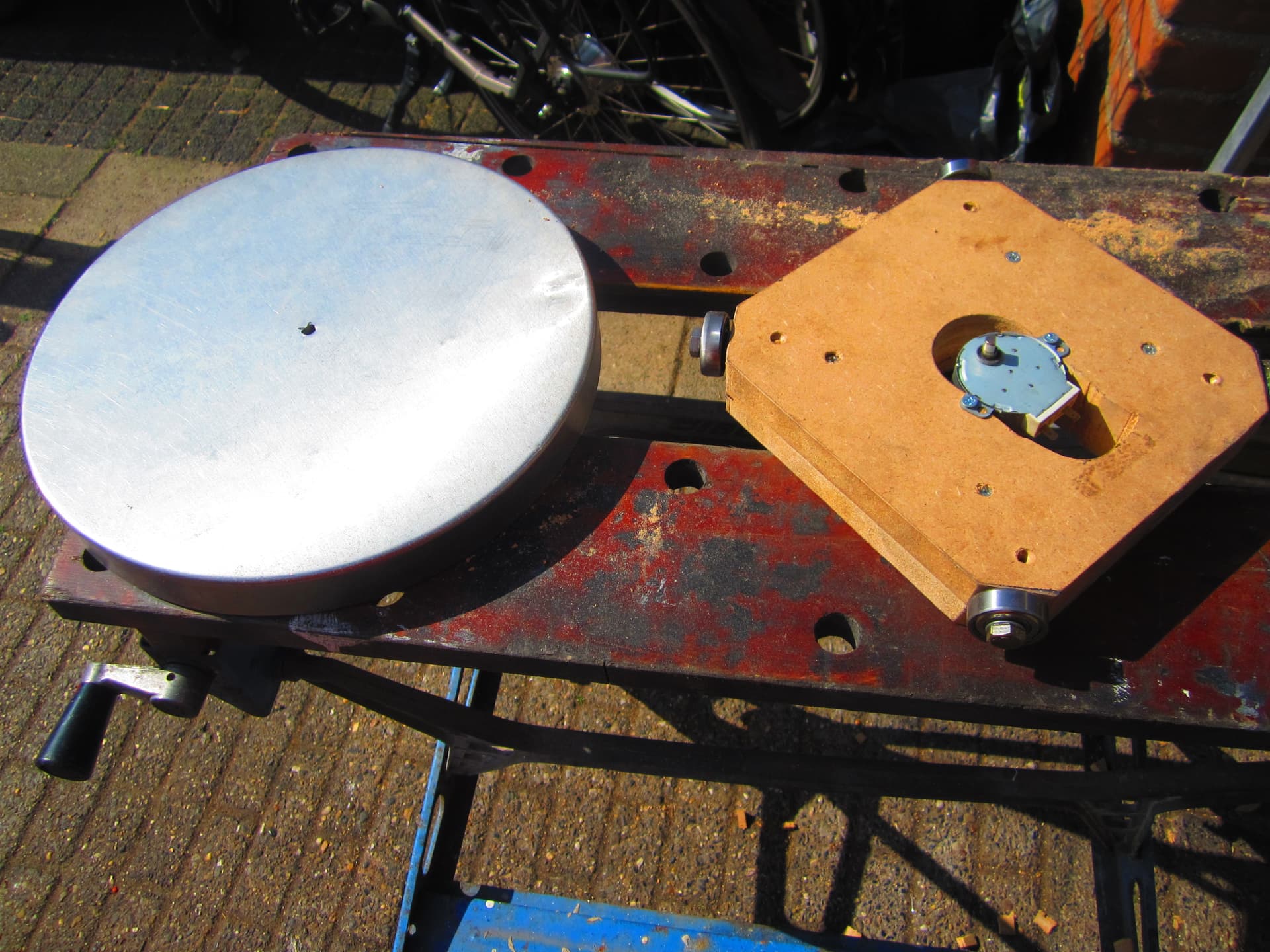 Lagertje 2 oude en 2 nieuwe het deksel is een rvs pendaal emmer deksel ,.motortje is van een magnitron plateau