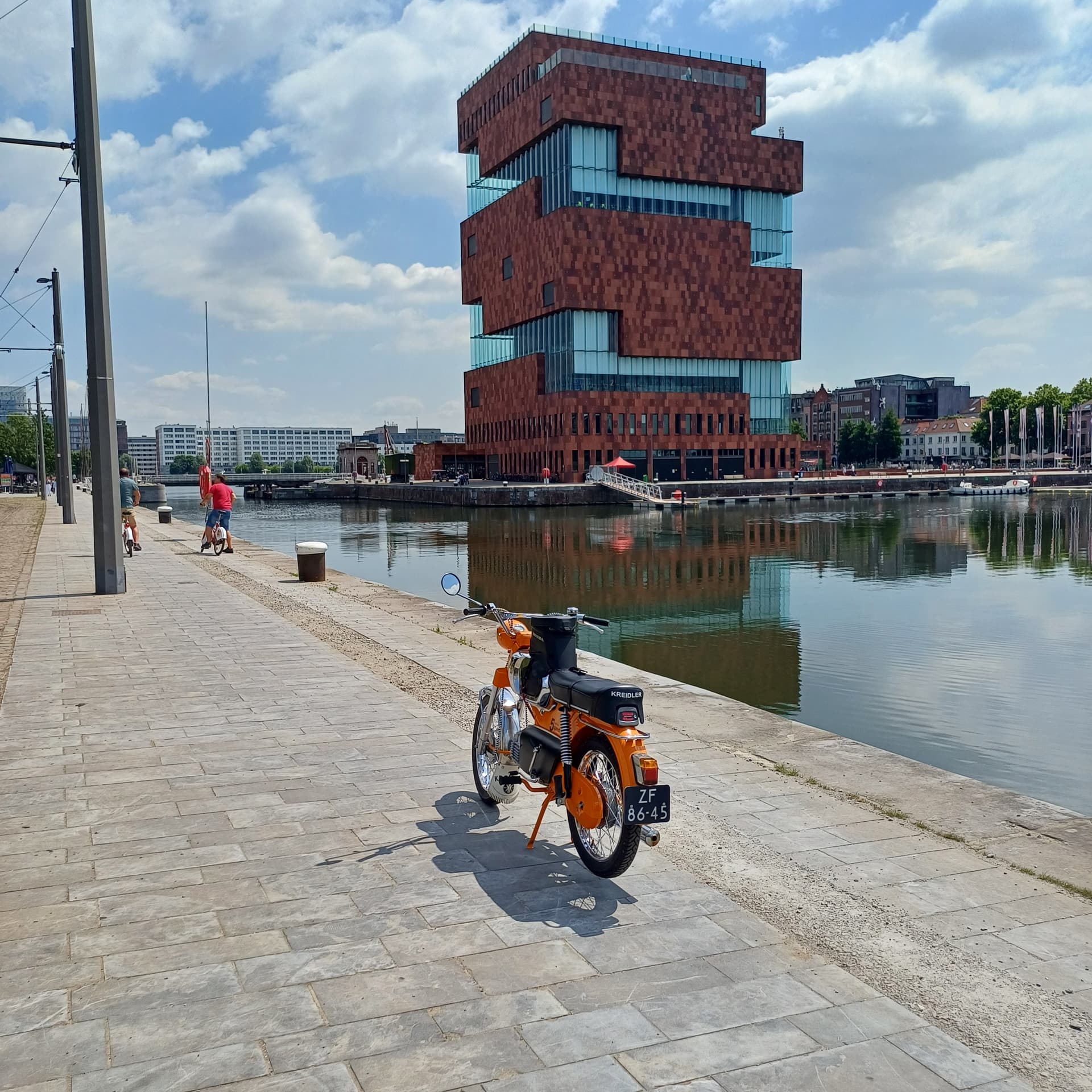 Hoi vandaag een rondje antwerpen gedaan vertrek om 945 langs de westerschelde via terneuzen en door de westerschelde tunnel terug de brommer om 1715 weer op de standaard gezet mooie rit alleen de schelde oversteken ging niet wat ik wilde eertste mogelijkheid vaarde de pond niet tweede mogelijkheid de fietstunnel deed de lift het niet derde mogelijkheid een gratis pont ik heb op fietsknoop puten gereden maar op sommige fietspaden mogen een A brmmer en B brommer rijden dus wel wat gepuzzel heb een afstand van 185 km gereden met toch wel een beetje zeer zitvlak leuke rit mooie weggetjes tot de volgende