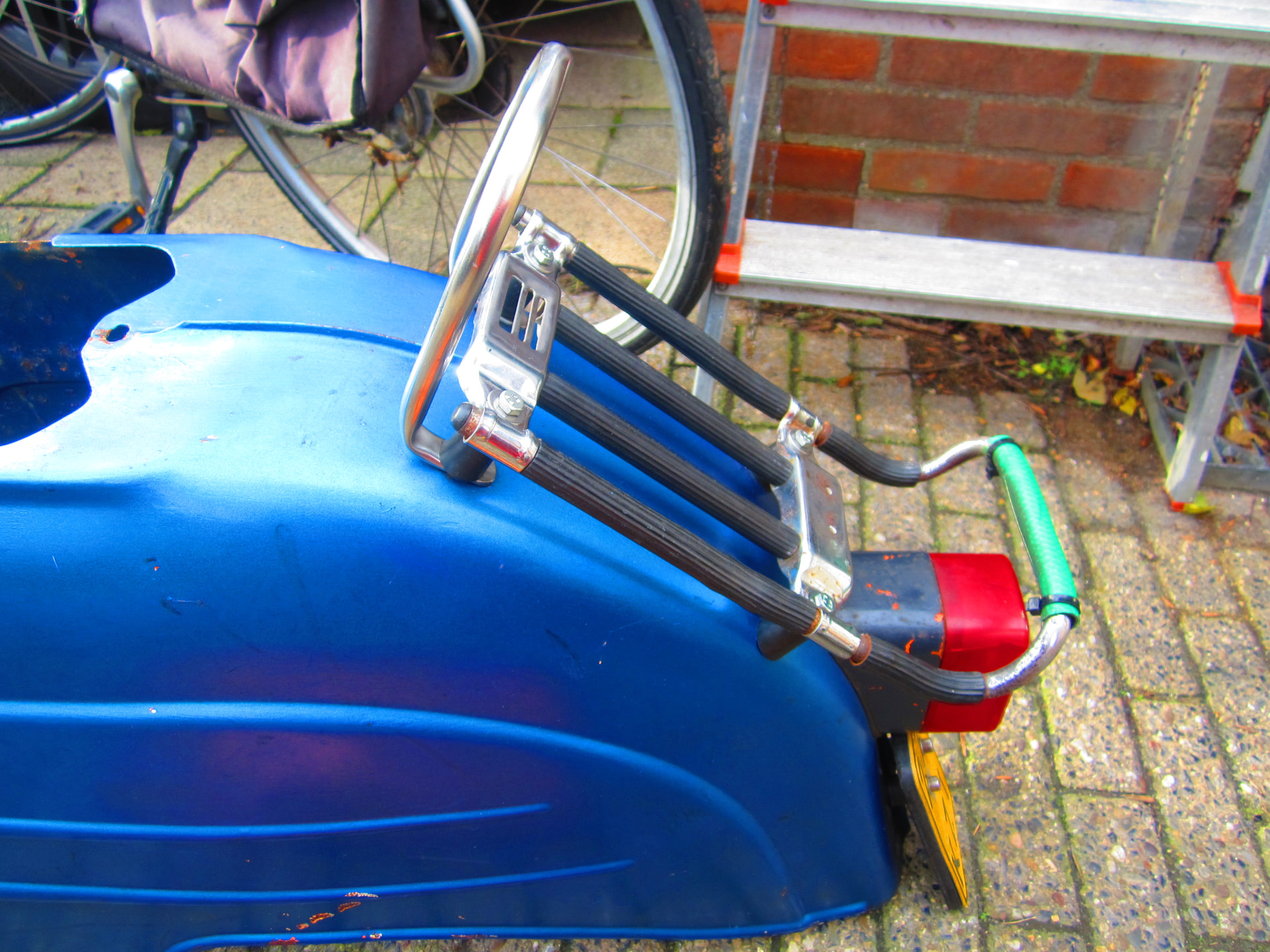 Vandaag vanmiddag ,.s morgens in de tuin aan het werk , het bagage rekje er op gezet deze moest wel een beetje aangepast worden met het til beugeltje ,staat goed vindt ik .