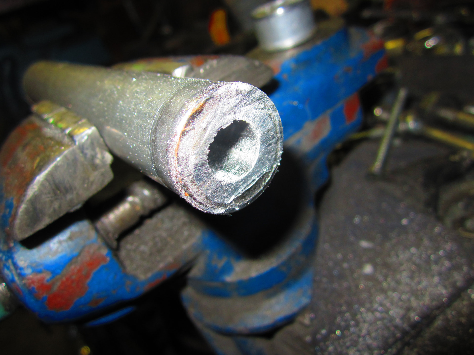 Voor de schijfrem aan het passen en meten geweest voor de opvul bussen maar net niet de goede maat ,en toen maar weer aan de slag met de pijpen snijder ,een dikke alu pijp de helft in snijden en de andere helft zagen .