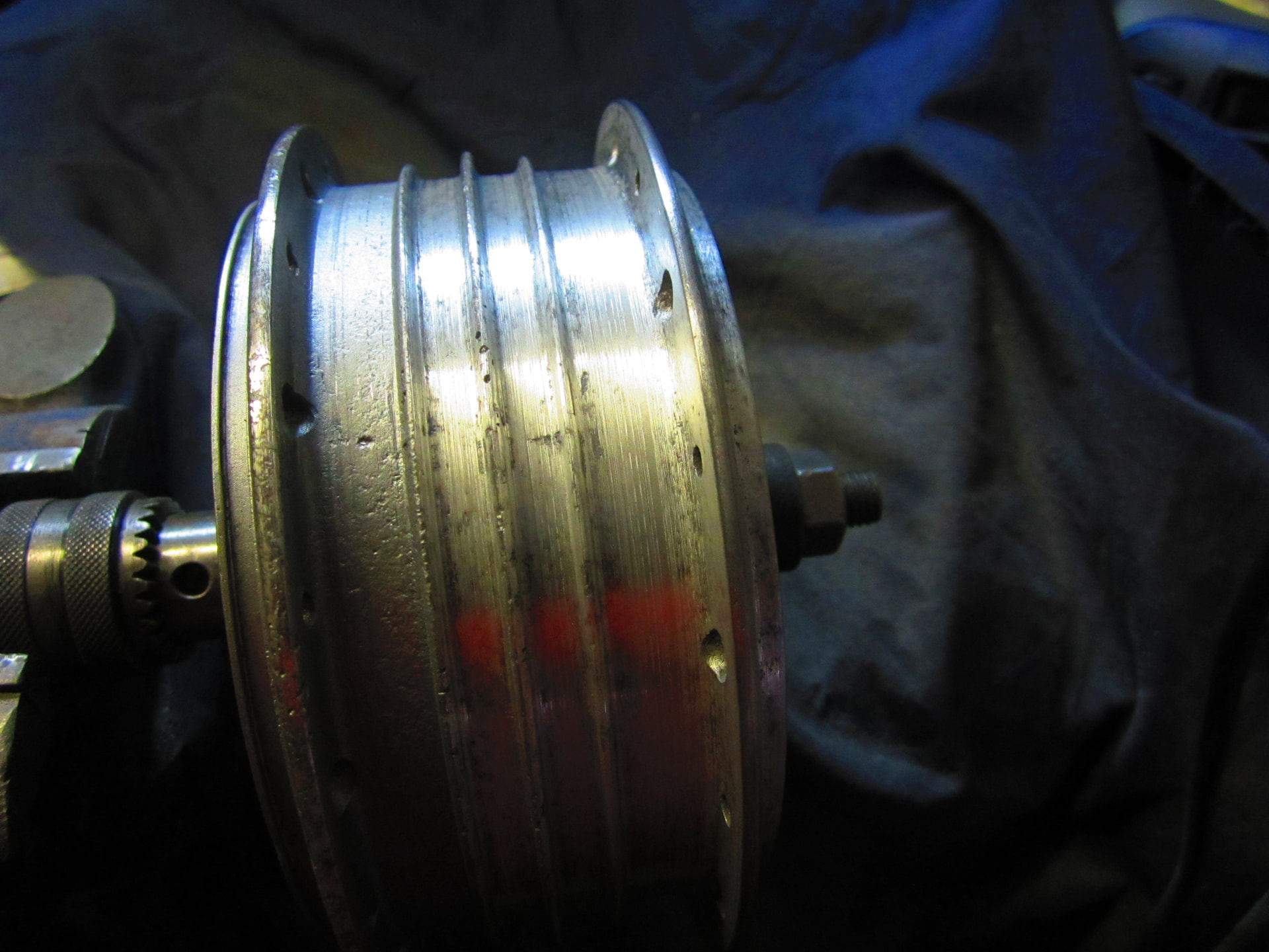 Vandaag het naafje van de Simson K R aangepakt deze was zeer ruw na het schoon wassen