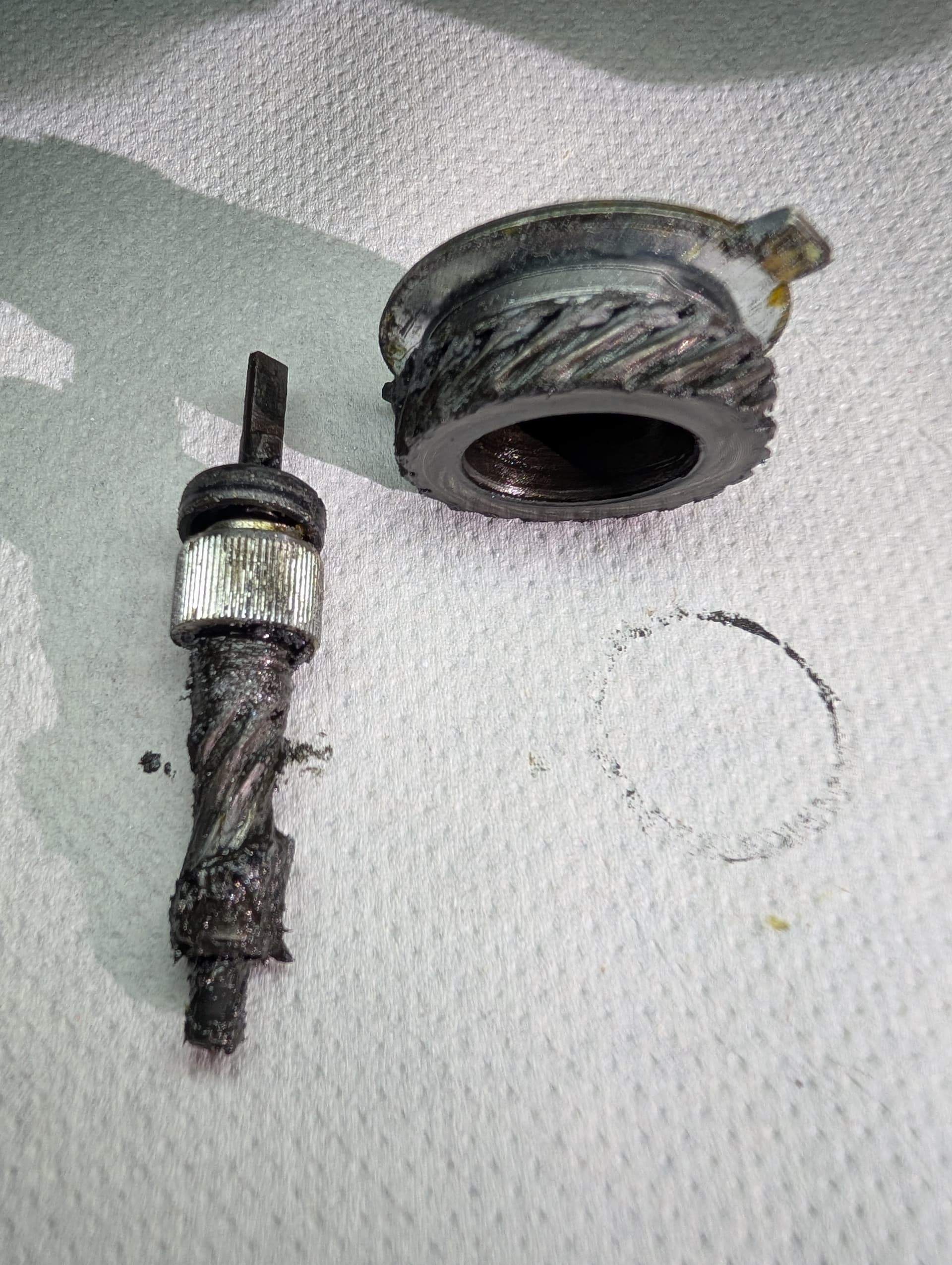 als nieuw dus. Laatste optie, aandrijf mechanisme in het wiel. Dat was hem dus. Helemaal weggesleten.