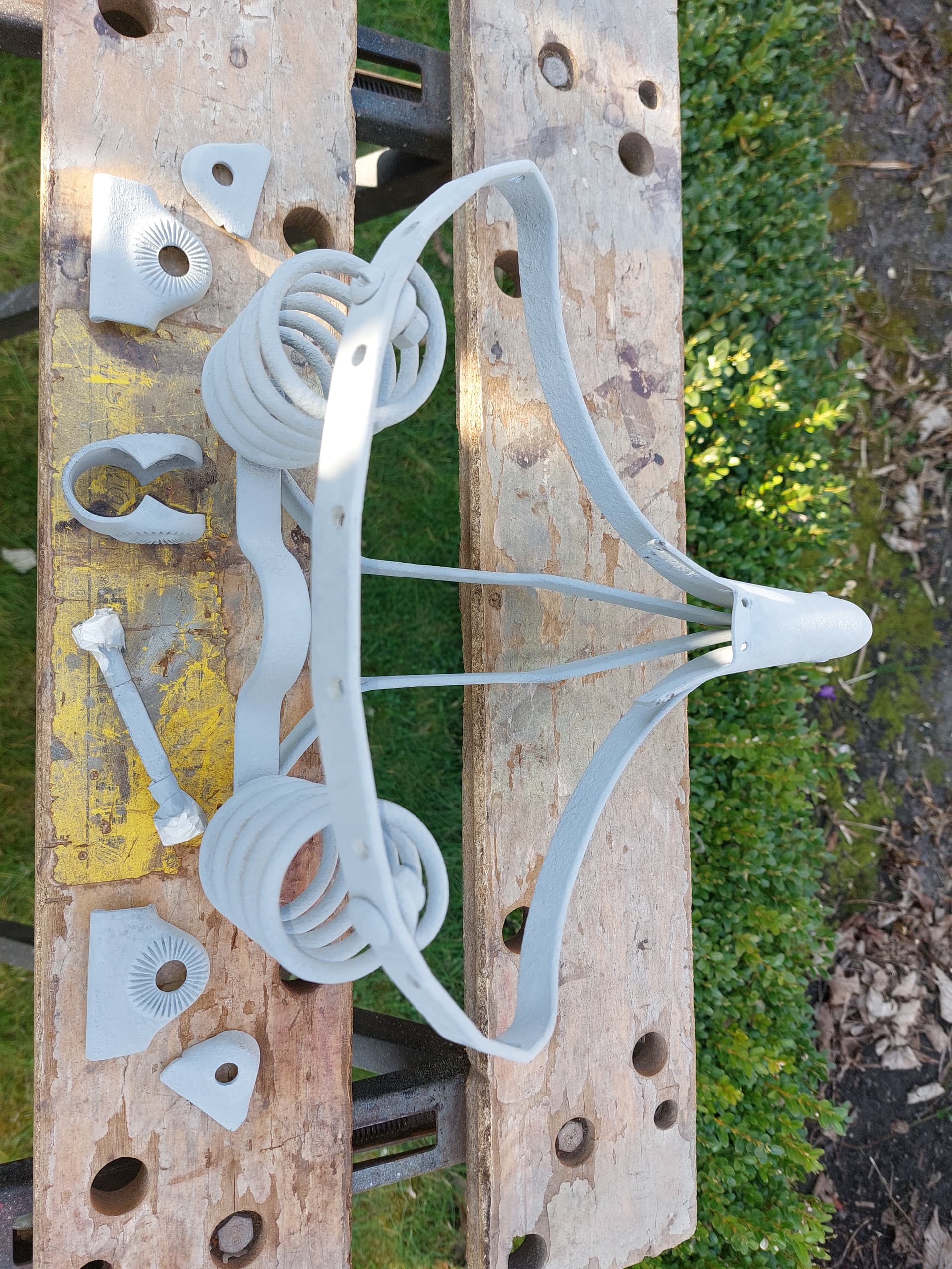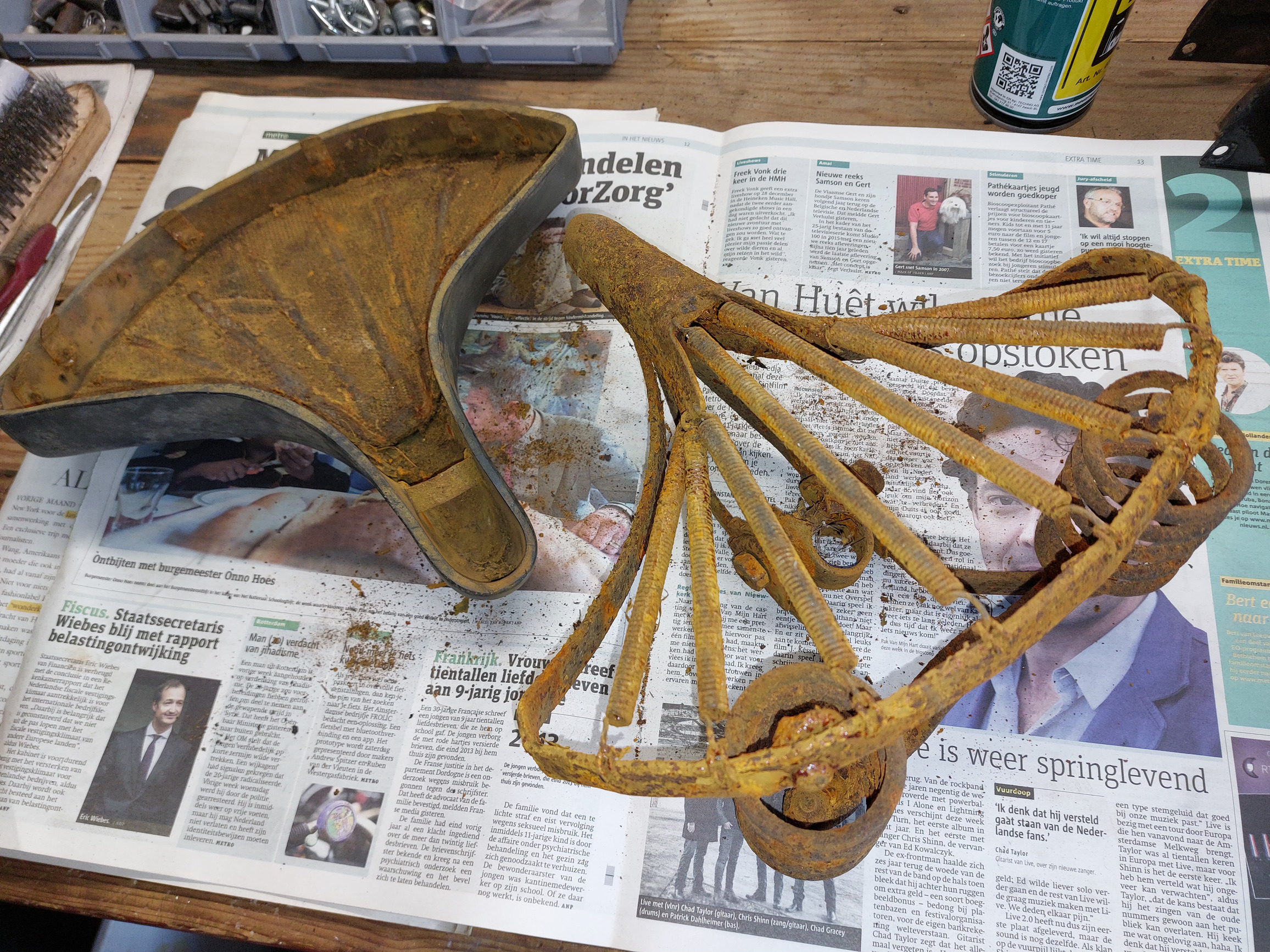 Je hebt toch een straalkastje Carl. Niet twijfelen er in met dat zadel en proberen. Voor veren misschien goedkoop nieuwe te vinden zonder roest?