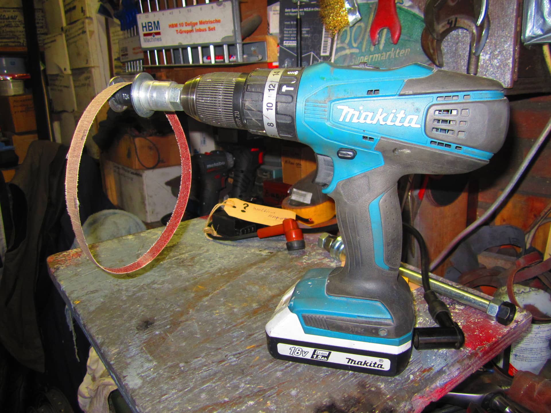 Nu ik denk dat dit het eerste zelf made ding is wat niet naar behoren werkt ,.deze slotbout was bedoeld om R V S te schuren maar de rol neemt niet goed het schuurbandje mee ,een doeken bandje gaat nog een klein beetje .