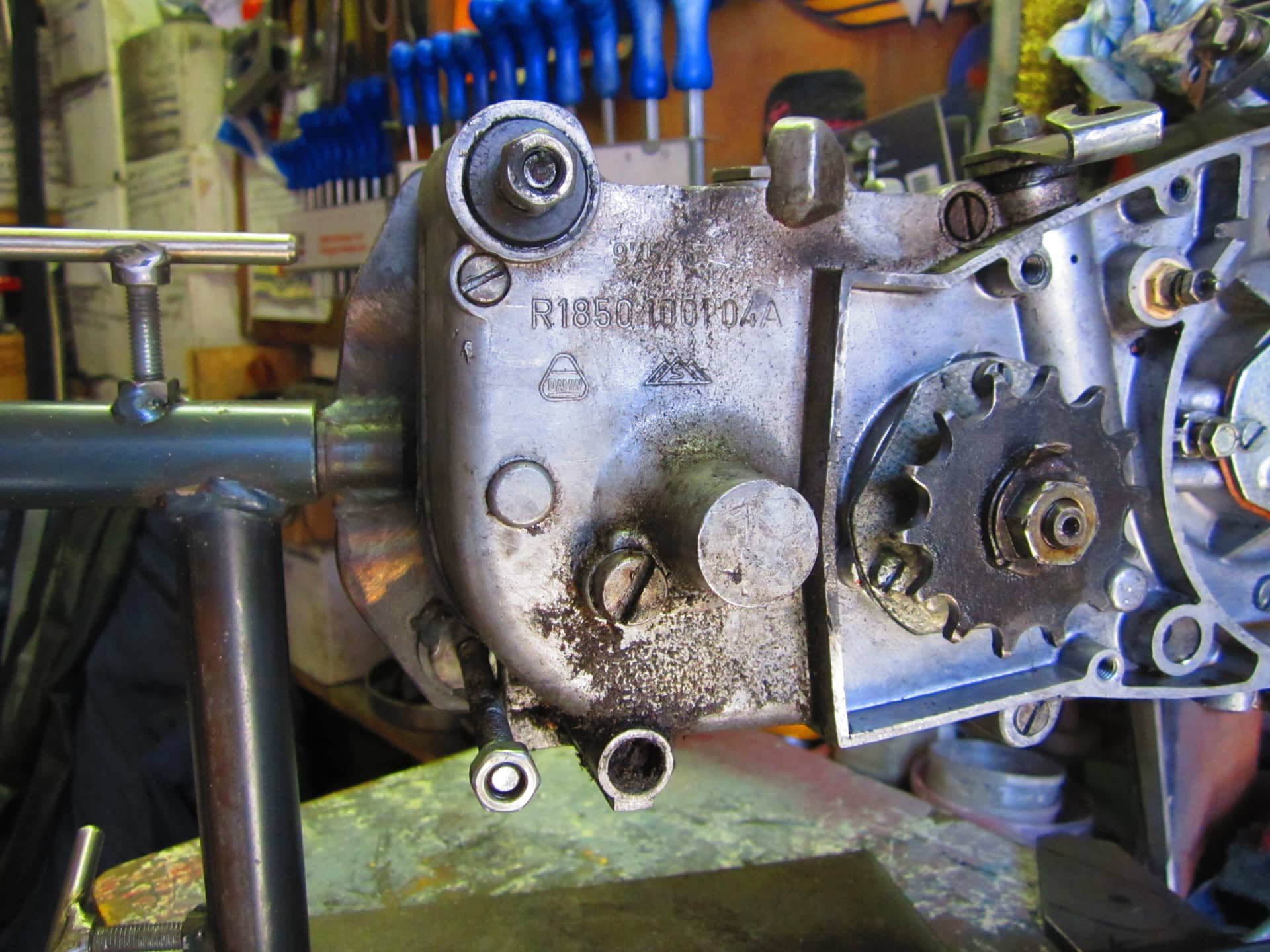 Dacht dat ik de motor standard nog te moeten verbouwen voor het andere Simson blok heeft een iets andere ophanging ,.maar het blok hangt tegen de onderste bout