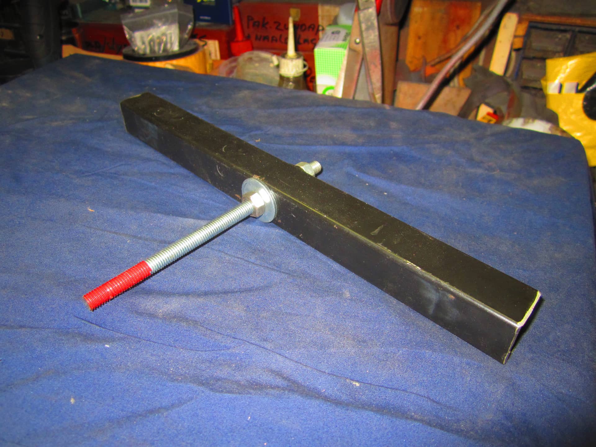 Dit gereedschap is gemaakt van een stuk fiets drager wat bij Andre in de oud ijzer bak lag ,draadeind is recht afgedraaid door Andre met Dank aan hem .