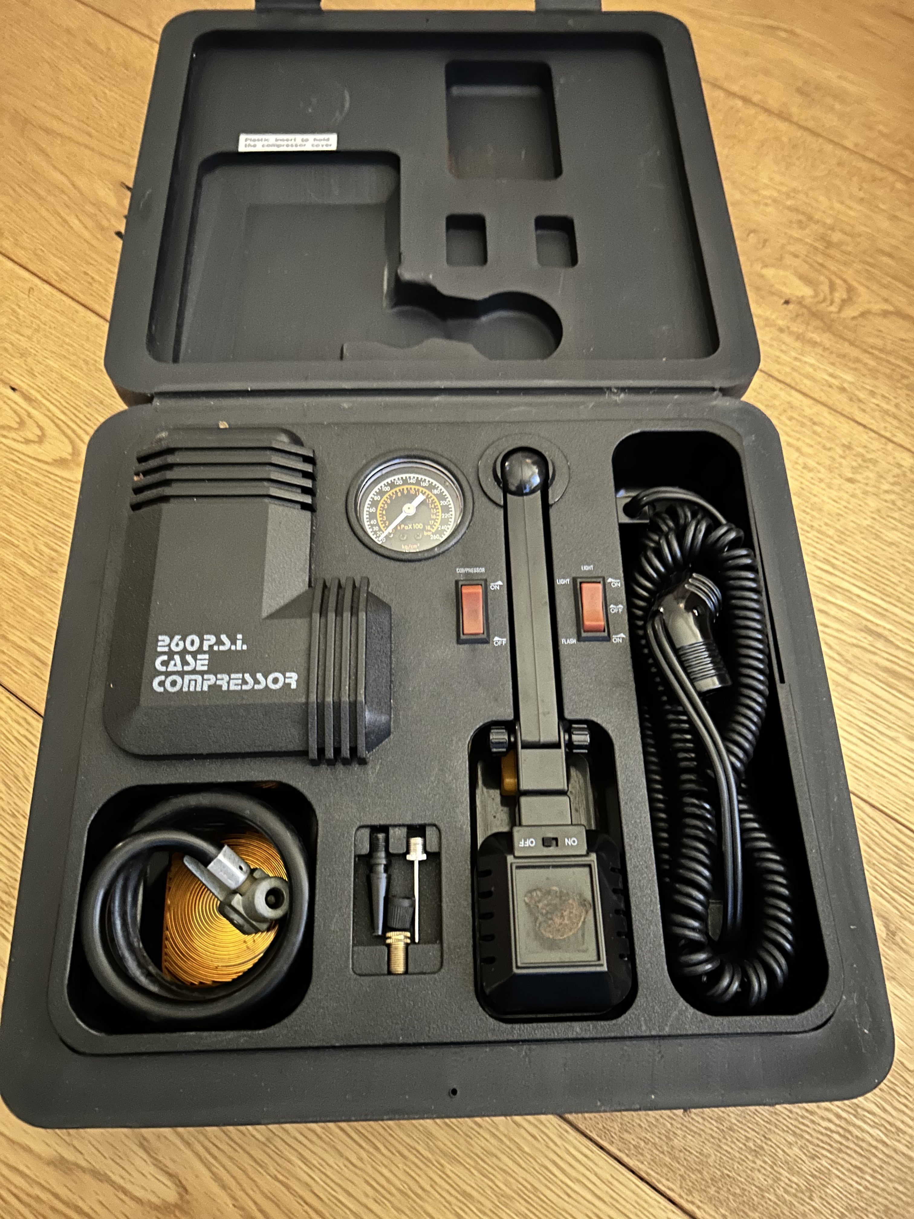 En zojuist hier in het dorp nog een 12 volt compressorkitje opgehaald voor een prikkie €5. het setje is eigenlijk nooit gebruikt. ik wil kijken of ik het aan kan passen voor gebruik in C2, aansluiten op een accu en je hebt daar een bandenpompje staan en voor kleine reinigingsklusjes perslucht. En als dat niet wil lukken heb ik in elk geval een aardig bandenpech setje voor in mijn Mazda MX5