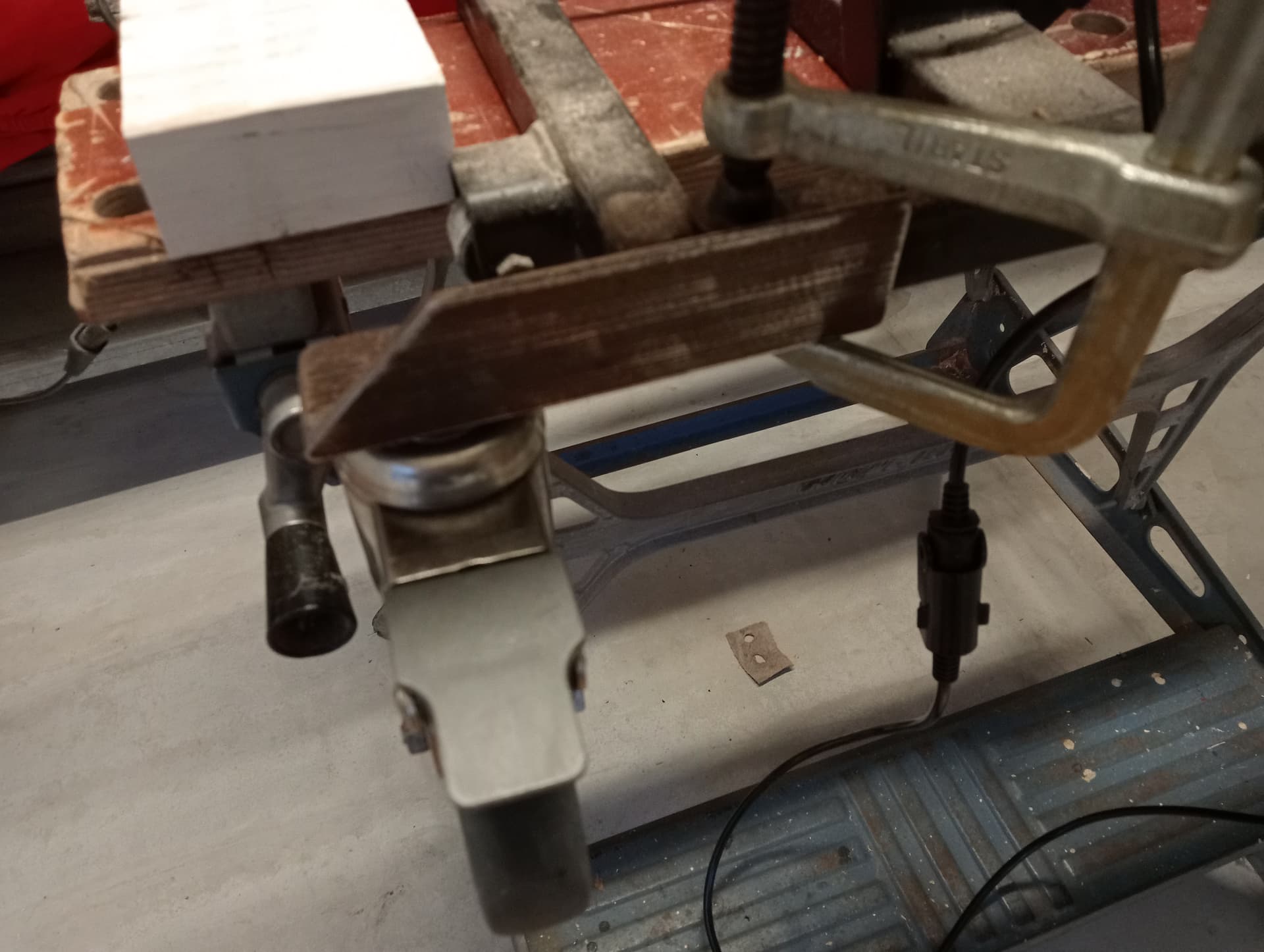 Vandaag het concept en de lijmklemmen vervangen door de onderdelen vast te lassen en extra gaten boren voor stevige constructie. Nu moeten er nog blokkade ijzers onder voor het bovenblad zodat het niet klem komt te zitten.