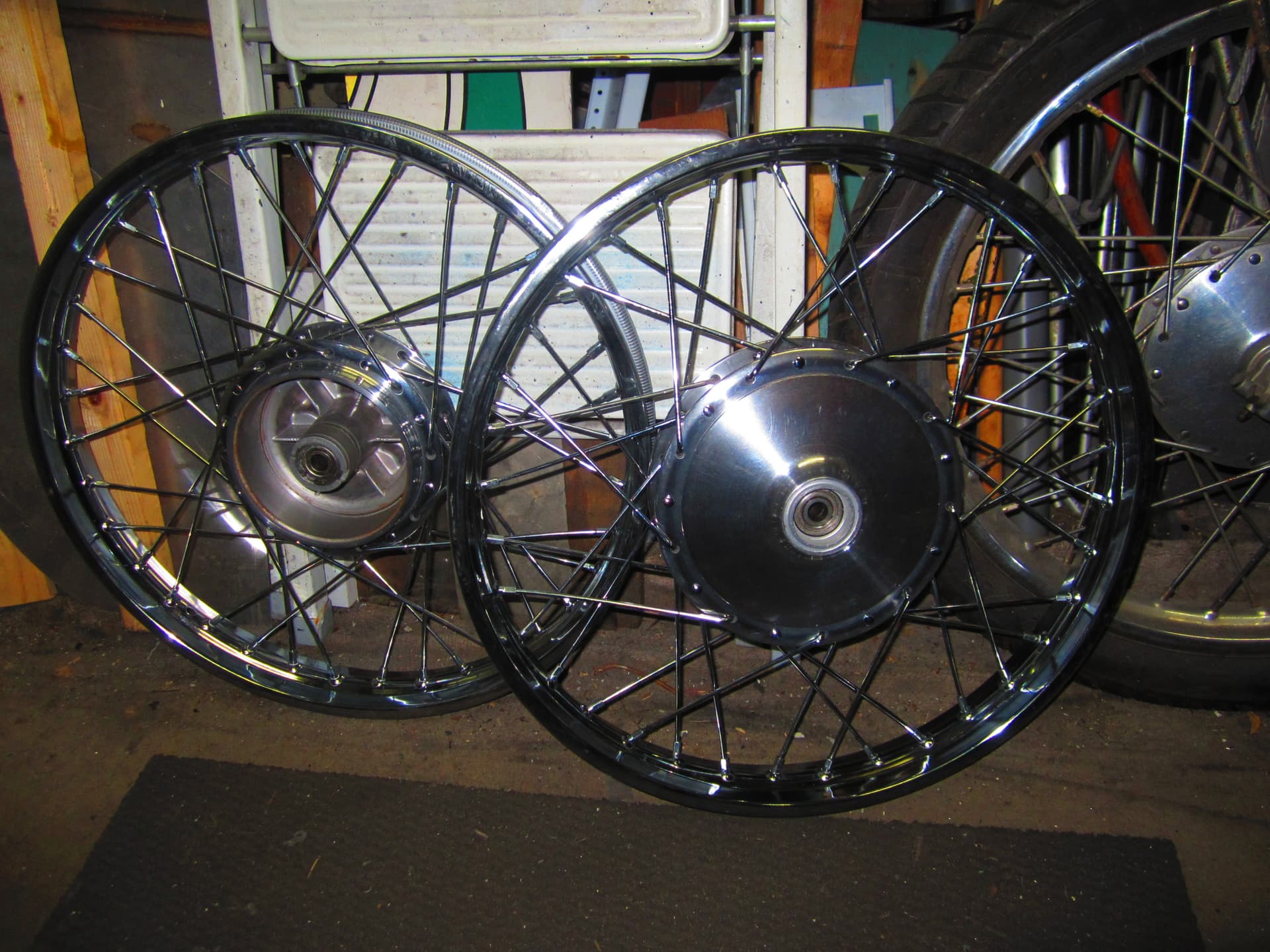 En weer 2 Zundapp wielen klaar kleine naven de voorste is een bolle naaf de ander is een gloed nieuwe achter naaf .