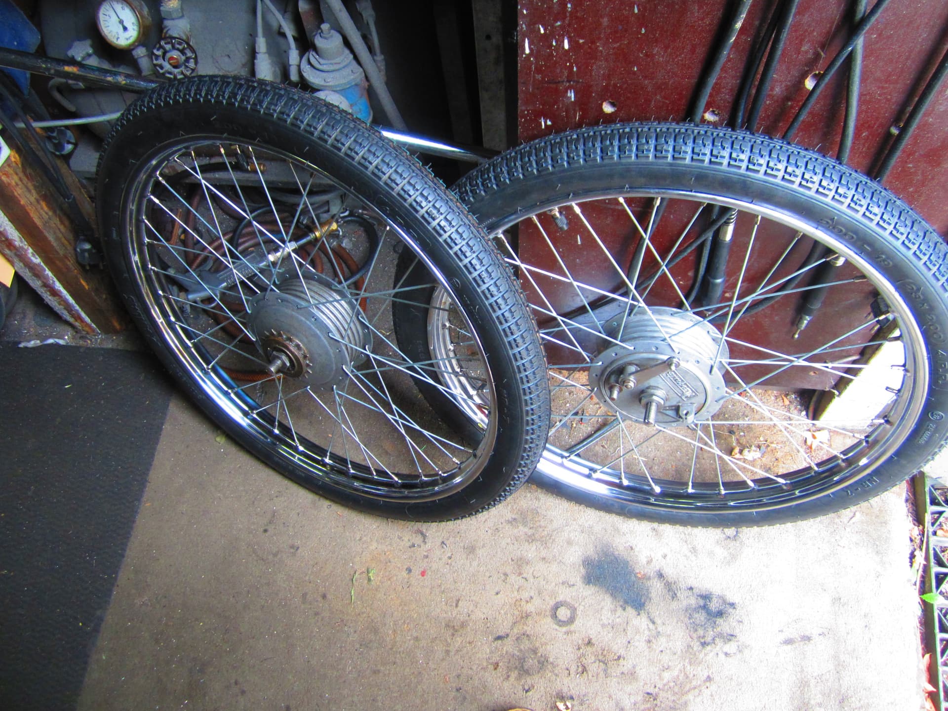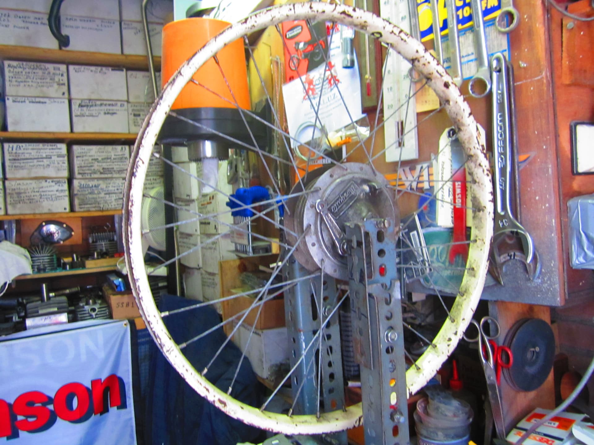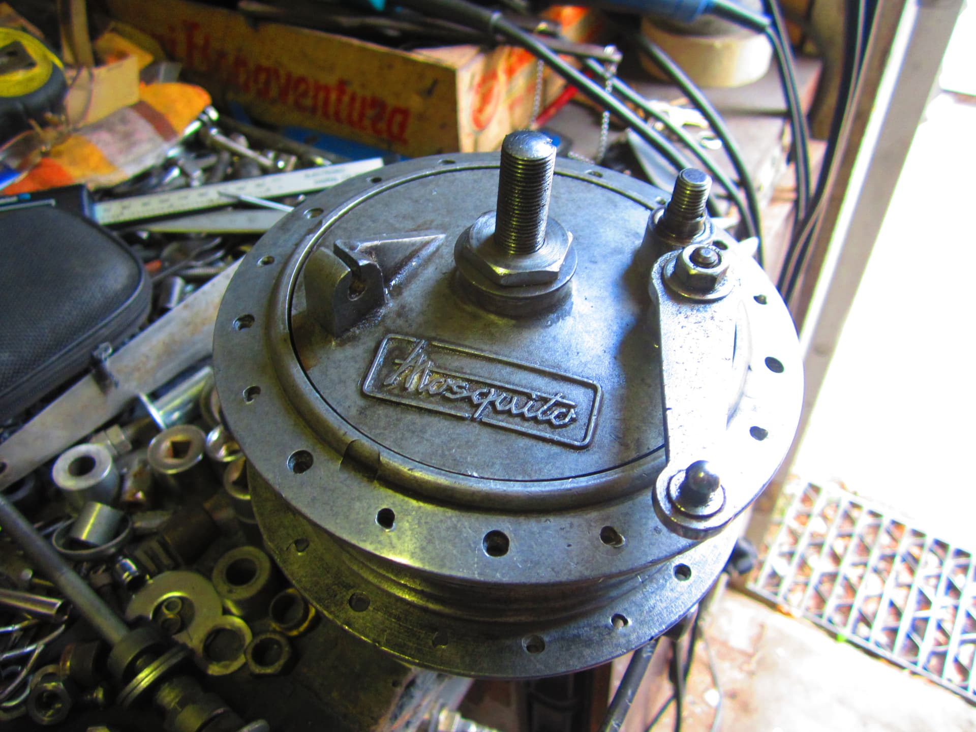 Deze week aan het stoeien geweest met Mosquito wielen 60 jaar oud ,moesten van grote fiets wiel naar brommer 19 inh velgen om gespaakt worden ,klus apart .